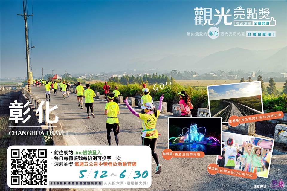 新聞焦點 彰化最讚~觀光亮點獎 按讚投票抽好禮~ 歷史訊息 | 發布日期 2023/05/19~2023/06/30 | 發佈單位: 城市暨觀光發展處 | 發佈日期: 李科長 (04)7532761 | 更新日期 2023/05/17 | 瀏覽人數: 103人 為振興疫後觀光,吸引國內外遊客聚焦臺灣旅遊,交通部觀光局即日起至6月30日止辦理「觀光亮點獎」評選活動,分「生態」、「文化」、「樂活」3大類,全臺123個景點及體驗活動,將選出18個臺灣創新亮點及多個特色亮點獎項。觀光亮點網路選讚開打,民眾用LINE登入就能投票,每投1票就可獲得1次抽獎機會,天天投票週週抽獎,獎項包含觀光亮點體驗首發團、旅遊金、星級旅宿等。 彰化縣入選3項提案分別為「芳苑溼地紅樹林海空步道」、「台灣米倉田中馬拉松」、「鹿港溪風華再現」,角逐「生態類─景點暨體驗組」、「樂活類─活動暨體驗組」及「樂活類─景點暨設施組」獎項。彰化縣政府城市暨觀光處表示,芳苑海空步道全長約1公里,遊客可以近距離觀察紅樹林與淺灘地上的豐富生態,退潮時就像台灣版的摩西分海,可欣賞全臺最美的潮間帶、招潮蟹及美麗的夕陽。 另外,田中馬拉松是全臺四大馬拉松之一,每年總是吸引上萬名跑者以雙腳感受稻香小鎮,沿路有民眾啦啦隊為選手加油,提供補給品攤位,號稱為最具人情味賽事¬;而鹿港溪於清代是貿易運輸河道及貨物交易匯集地,造就鹿港的繁盛,彰化縣政府成功的整治鹿港溪,營造1.5公里景觀藍綠帶廊道,廣場公共藝術融入行船、生態之場域意象,以水岸歷史記憶新塑空間藝術。而彰化有15家觀光工廠,其中台灣優格餅乾學院曾獲得優良觀光工廠評鑑,此次亦獲經濟部提案名列票選名單。 彰化縣政府邀請大家一起為彰化「讚」聲,票投「生態類-景點暨設施組:芳苑溼地紅樹林海空步道」 https://is.gd/no8wlv 、「樂活類-活動暨體驗組:台灣米倉田中馬拉松 」 https://is.gd/yeXYSP 、「樂活類-景點暨設施組:鹿港溪風華再現」 https://is.gd/RQSdkw 、台灣優格餅乾學院 https://reurl.cc/o0l2gQ ,相關活動資訊查詢https://spotlightaward.taiwan.net.tw/