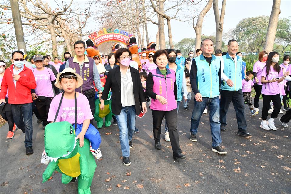 新聞焦點 「2024年埤頭鄉母親河畔木棉花季親子健行活動」龍來賞花 歷史訊息 | 發布日期 2024/03/16~2024/04/16 | 發佈單位: 城市暨觀光發展處 | 發佈日期: 丁科長 7532781分機2781 | 更新日期 2024/03/16 | 瀏覽人數: 101人 《置頂》 彰化縣埤頭鄉公所今(16)日一早在舊濁水溪中溪橋畔木棉花道盛大舉辦「2024彰化縣埤頭鄉母親河畔木棉花季親子健行活動」,彰化縣長王惠美、埤頭鄉長杜懿彩邀請全國民眾一同來埤頭鄉欣賞木棉花之美。王縣長感謝埤頭公所用心辦理活動,今年有親子健行、在地特色產業美食推廣及歡樂摸彩等活動之外,還有全國最長的木棉花道,正熱情如火綻放中,彰化是花都,春暖花開,歡迎大家龍來彰化遊玩賞花。 王縣長表示,今天天氣風和日麗,非常適合親子一起運動,中溪橋有開得非常漂亮的木棉花,感謝埤頭鄉公所長年來對木棉花道的推廣,縣府也不遺餘力的支持活動,讓更多民眾前來參與,今天的木棉花季親子健行活動,來回總共6公里的木棉花道,報名參加的人不但有參賽禮帆布提袋、社區美食餐券,走完全程還可以參加摸彩活動,有75吋液晶電視、20台腳踏車等多項大獎,獎項十分豐富,感謝公所的用心,讓活動更加精彩。 王縣長指出,埤頭鄉不僅是彰化的農業重鎮,有美麗的綠色隧道、田園風光,除了「彰化母親河」之稱的東螺溪,還有接住炸彈的合興宮媽祖,台灣穀堡稻米博物館、冰粽發明館、網羅彰化多元優質產品的彰化百寶村等景點,埤頭更有在地農產品「埤頭F4」-台粳9號米、蔥、包心白菜、平地高接梨,歡迎民眾來吃當季,享在地。 王縣長指出,縣府近期向中央爭取水環境整體改善計畫,總共核列7.66億,以生態保護、自然永續的工法進行水環境的整治,將讓在地的台灣伯樂、木棉花、台灣欒樹能成為埤頭當地的特色景點。 埤頭鄉長杜懿彩表示,感謝王惠美縣長在來參與活動,感謝縣府持續投入經費整治東螺溪,讓木棉花沿岸水質更加清澈,更撥列1700萬元持續打造木棧道及觀景台,相信明年來參與活動的民眾有更好的觀景體驗。感謝縣府及埤頭鄉民代表會的支持,除了今日的親子健行比賽,明天還有親子寫生比賽,希望鄉親可以利用假日期間,來木棉花道欣賞盛開的木棉花。 城觀處表示,3至4月是賞花的好時節,彰化各地開始百花齊放,有媲美金色隧道的「黃花風鈴木」、夢幻雪白的「苦楝花」、鐵道限定的賞花秘境「粉紅花旗木」、萬紫千紅的「蜀葵花海」以及熱情如火的「木棉花」等等,每月都有專屬季節的花兒熱情盛開,相關賞花資訊可至「愛玩彰化」搜尋,歡迎全國鄉親,來彰化賞花看表演、吃美食、遊景點。 與會貴賓有立委謝衣鳯服務團隊、埤頭鄉長杜懿彩、埤頭鄉民代表會主席張景舜、副主席陳國雄、議員劉淑芳服務團隊、縣政顧問林明暐、許豐麟、黃坤煌與各級民代及地方仕紳等。