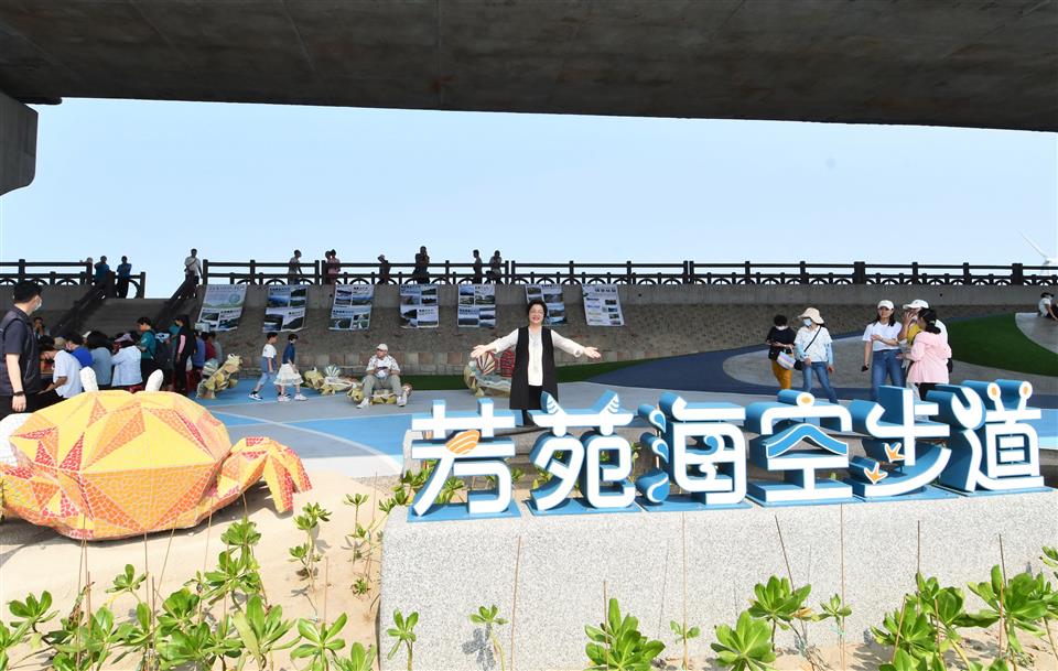 新聞焦點 優化海空步道橋下空間 結合公所兒童節正式啟用 歷史訊息 | 發布日期 2024/04/13~2024/06/30 | 發佈單位: 城市暨觀光發展處 | 發佈日期: 建設工程科蔡科長 7532711 | 更新日期 2024/04/13 | 瀏覽人數: 89人 今(13)日上午在芳苑無極西華宮前舉辦「漫步海空步道悠遊橋下空間-芳苑鄉慶祝兒童節活動」,指導單位彰化縣政府、農業部林業及自然保育署,主辦單位芳苑鄉公所,協辦單位芳苑鄉民代表會、農會、學校、各社區發展協會、村辦公處、西華宮等,彰化縣長王惠美、芳苑鄉長林保玲、農業部林業及自然保育南投分署技正鄭文惠等人與會,王縣長表示,芳苑海空步道在110年9月開放啟用後,濕地生態和絕美夕陽景觀成為國內爆紅打卡景點,為了完善海空步道環狀生態旅遊動線,縣政府投入1,156萬元,感謝議長謝典林與所有議員對預算的支持,讓工程順利進行,優化海空步道橋下空間,讓鄉親、遊客能有更多輕鬆休息的地方,帶動地方觀光,期待透過人潮,帶來錢潮,讓大家好還要更好。 芳苑鄉長林保玲表示,感謝王惠美縣長縣府團隊用心讓海空步道成為芳苑一大觀光亮點,這次更來建設優化海空步道橋下空間,完善海空步道週邊觀光環境,增設休憩空間,假期也看到許多家長帶著孩子來遊玩,這次也邀請在地國中小表演團體來演出體驗,一起來歡慶。 王縣長表示,這次新增從海空步道北出口至南出口建置台 61 橋下步道,優化台61線橋下休憩節點空間,鄉親可以漫步在可愛的濕地生態公仔,還有休憩廣場和導覽解說牌供生態教學,及特色浪型座椅讓孩童有遊玩休憩的空間。另外,縣府並再向內政部國土署爭取補助1000萬元的經費,辦理芳苑鄉漁村聚落海牛人文景觀再造計畫,預計年底前完工,希望讓芳苑整體環境更好,更具有故事性,吸引觀光人潮。芳苑美食數不盡,有鮮蚵、蚵嗲、枝仔冰、烏魚子等、花生油、芝麻醬,歡迎大家來遊玩。 城觀處表示,芳苑鄉的觀光資源豐富,西華宮鄰近「芳苑白馬峰普天宮」,是全台灣面積第二大的媽祖廟,旁邊還有可以近距離觀賞紅樹林景色及豐富濕地生態的「芳苑濕地紅樹林 海空步道」,以及無形文化資產的「海牛採蚵」生態體驗,邀請鄉親好朋友來場 生態之旅,體驗坐牛車在泥灘地觀賞招潮蟹、彈塗魚,接著到海空步道看夕陽,一日行程感受芳苑鄉的美好。 與會貴賓有縣議員洪騰明、吳淑娟、立委謝衣鳯服務團隊、芳苑鄉長林保玲、農業部林業及自然保育南投分署技正鄭文惠、經濟部水利署第四河川局分署長李友平、芳苑鄉民代表會主席陳禮模、副主席林清在、芳苑鄉農會總幹事謝介民、西華宮主委蔡玉進、西華宮宮主林財旺、農漁牧產業觀光推展協會理事長曾宗雄、芳苑鄉青工會總幹事林勝宏、城觀處長王瑩琦、副處長洪世益、縣政顧問林金龍、各級民意代表及地方仕紳等。