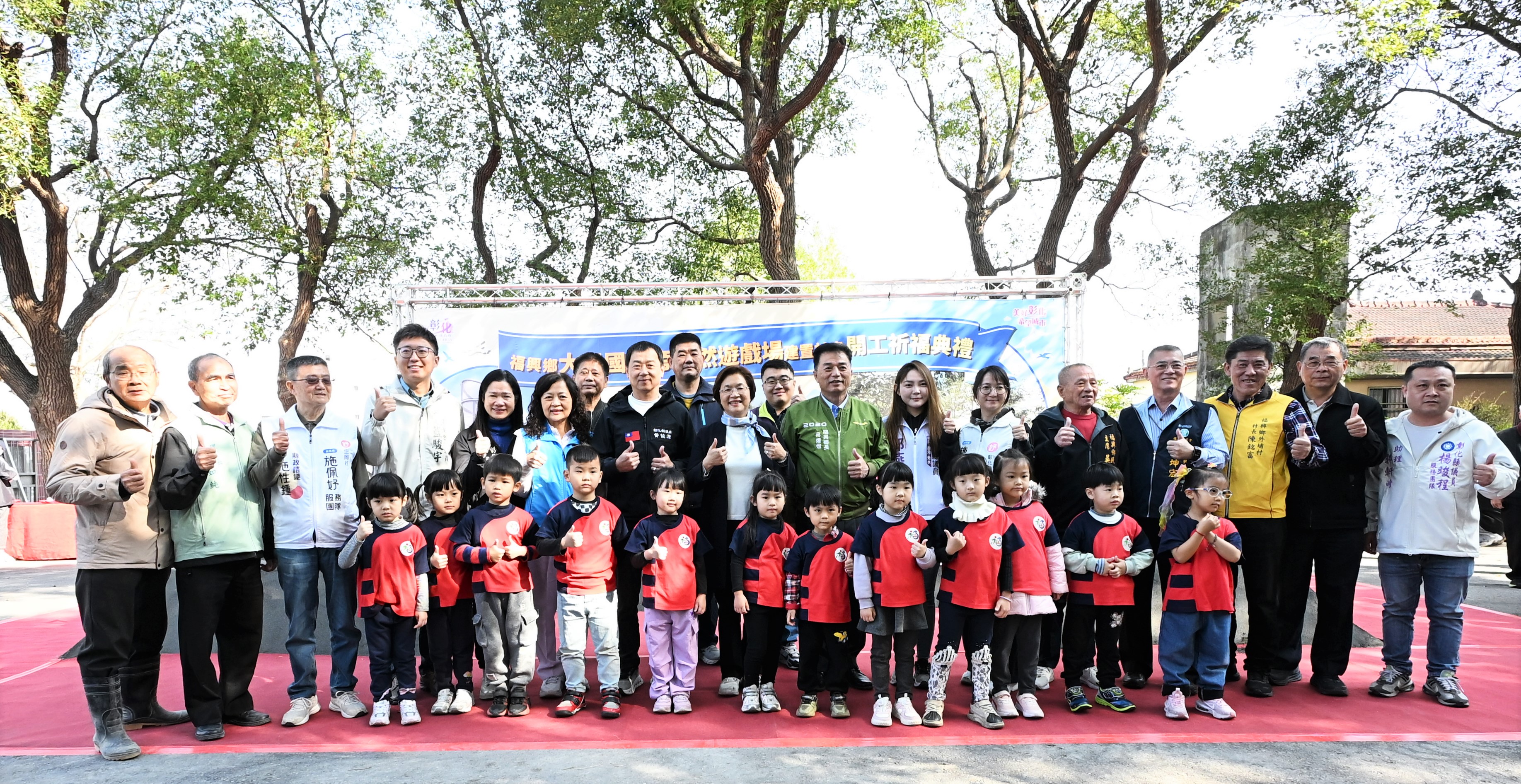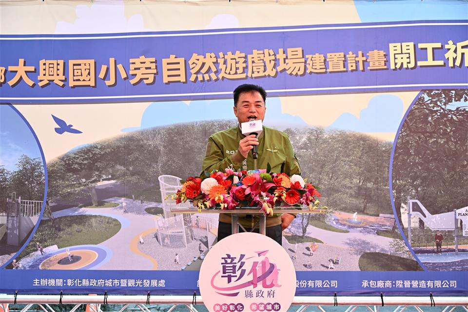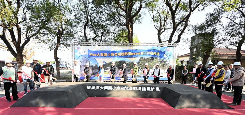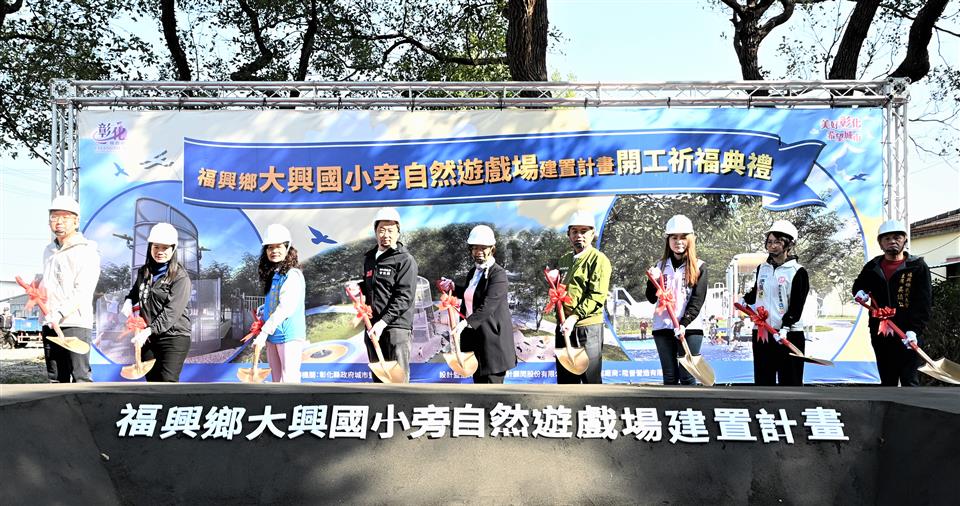 新聞焦點 福興鄉大興國小旁自然遊戲場盛大開工 打造城市中的飛行探索樂園 發布日期 2026/02/10~2026/03/10 | 發佈單位: 城市暨觀光發展處 | 發佈日期: 謝科長 7532771 | 更新日期 2026/02/10 | 瀏覽人數: 36人 《置頂》 彰化縣政府持續推動各鄉鎮共融休憩場域之建置計畫,彰化縣長王惠美於今(10)日上午至福興鄉主持「彰化縣福興鄉大興國小旁自然遊戲場建置計畫」開工動土典禮。王縣長表示,本案工程經費2,800萬元,工期240日曆天,融合地方原有飛行場、防空塔及砲塔等歷史建築,以「飛行探索樂園」為主題進行規劃。 王縣長表示,大興國小旁的自然遊戲場,融入飛機及砲塔意象,規劃一座雙層「砲台遊戲塔」,結合飛行滑場,提供具攀爬、遠眺、射擊及溜滑梯的多元遊戲體驗。並新建一座多功能的飛機造型遊具,規劃有飛行鞦韆、訓練跳床、極速旋轉盤及童萌小隊搖搖樂遊具,同時建置飛行哨所解說亭及林間體健區等休憩體健設施。本案工程位於縣有土地,感謝校長願意提供4000多平方公尺的土地,也感謝公所及社區的認養。除興建遊戲場外,對面也將新建外埔社區活動中心,未來將能成為提供孩童遊憩、鄉親運動休閒及與環境共融的遊憩場域。 王縣長指出,感謝議長謝典霖及所有議員對預算的支持,彰化縣目前有16座共融式特色公園,本案整合校園通學廊道及戶外生態教學需求。保留可觀察獨角仙、鳳頭蒼鷹等生態喬木,提供孩子豐富的探索環境。希望孩子走出戶外,在美好的大自然環境中快樂成長。 縣議員凃淑媚代表致詞表示,感謝王縣長縣府團隊的用心,福興鄉除了是乳牛的故鄉,以往也是彰化飛行場防空塔的基地所在,融入在地防空塔的歷史與文化,打造飛行遊戲場,讓大人、小孩可以運動及遊憩,培養親子關係。縣議會也會大力支持縣長對地方的建設,希望工程如期如質、順利完工。 福興鄉長蔣煙燈表示,這塊土地原本是自然生態狀態,且蚊蟲很多,感謝王縣長及議員的支持,整治這塊土地,成為可以運動遊憩的遊戲場,也成為東福興的一個亮點。東福興是早期的飛行場,這次將飛行場的文化意象融入建設裡面,期待早日完工讓鄉親們一起使用。 城市暨觀光發展處表示,福興鄉外埔村、番婆村轄內有「原彰化飛行場防空塔」的歷史建築,縣府以「飛行探索樂園」為主題,打造具特色的共融遊戲場及休憩場域。縣府近年積極推動「一鄉鎮一特色公園」,已陸續完成超過16座共融式特色公園,未來將持續新增,以實際行動實現「美好彰化 希望城市」的願景。 與會貴賓有縣議員凃淑媚、楊妙月、藍駿宇、郭燕陵、施佩妤、黃俊源、立委陳秀寳服務團隊、立委陳素月服務團隊、縣議員楊竣程服務團隊、福興鄉長蔣煙燈、福興鄉代表會主席吳鎮江、福興鄉農會總幹事林坤宏、福興國中校長林妙娟、大興國小校長梁瑞祺、西勢國小校長王建智、縣府城市暨觀光發展處長王瑩琦、各級民意代表與地方仕紳等。