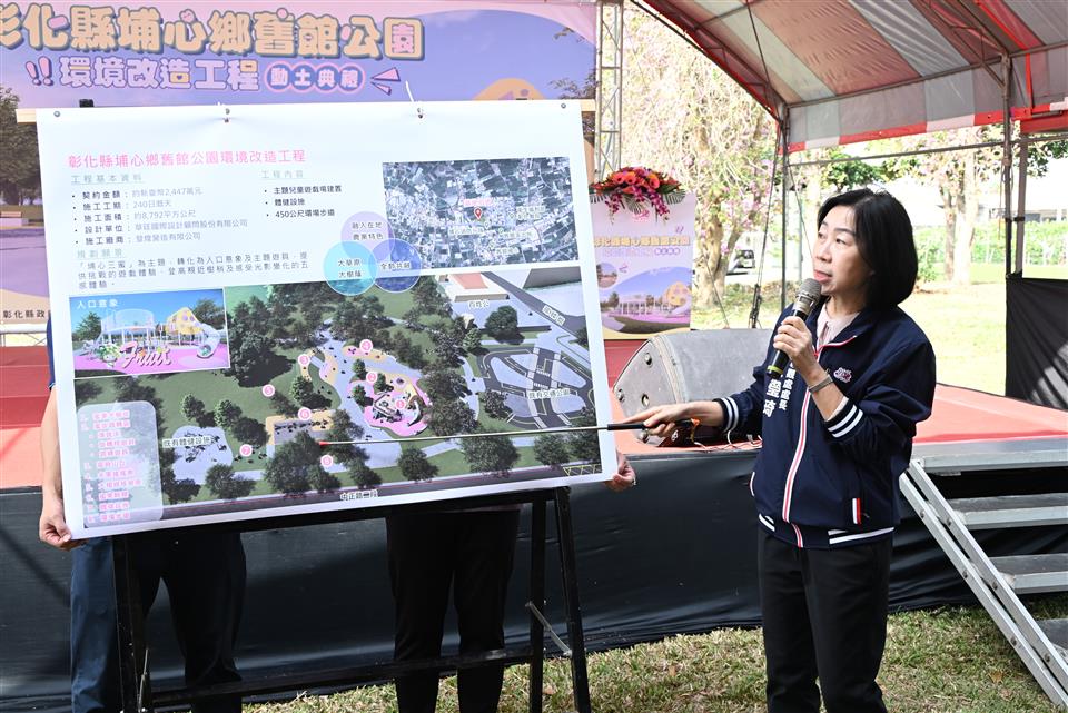 新聞焦點 「三蜜」產業融入場域設計 埔心鄉舊館公園環境改造開工動土 發布日期 2026/02/24~2026/03/24 | 發佈單位: 城市暨觀光發展處 | 發佈日期: 建設工程科 謝科長 04- 7532771 | 更新日期 2026/02/24 | 瀏覽人數: 9人 《置頂》 彰化縣政府持續推動各鄉鎮共融休憩場域之建置計畫,縣長王惠美今(24)日前往埔心鄉主持「埔心鄉舊館公園環境改造工程」開工動土典禮。王縣長表示,本工程在議長謝典霖及議員們對預算的支持下,自籌2,447萬元,加上增設親子與無障礙廁所等設施加碼600萬元,總計3,047萬元。另以埔心知名的「三蜜」產業為設計主軸,預計將為縣內增添親子休憩新亮點。 王縣長表示,本次重新改造舊館公園,結合埔心在地特色「三蜜」,也就是葡萄、芭樂與金蜜芒果,打造成兼具遊憩、教育及休閒功能的「蜜果樂園」。園區內設置1座6 公尺高的蜜果大樹塔,裡面包含攀爬設施、攀網、滑索等遊戲功能;還有 7.5 公尺高溜滑梯、跳跳床、旋轉遊具、翹翹板,以及蜜果主題盪鞦韆與水果造型搖搖馬。 王縣長指出,同時為長輩規劃 450 公尺環場步道與體健設施,讓不同年齡層都能在此找到適合的活動空間。希望大朋友帶著小朋友,走出戶外享受和煦的陽光,增進親子關係。環場步道銜接既有交通公園與停車場,串聯完成後將成為埔心地區重要的親子活動空間,不僅是遊憩場所,也將兼具教育功能與自然體驗。 縣議員張春洋代表致詞時表示,感謝王縣長與張鄉長的鼎力支持與縝密規劃,促成工程順利動土。完工後將為在地孩子打造更優質且安全的遊憩場域。未來期盼進一步增設多元運動設施,提升周邊居民的運動空間品質。 埔心鄉長張佩瑩表示,非常開心也非常感謝,埔心鄉終於也要有一座共融式公園,這幾年很多地方上的年輕家長都在反映說,埔心能不能有一個更多設備、更多遊樂設施的多元公共空間,給埔心的孩子使用,平常可帶孩子來這邊放電、遊玩。感謝王縣長聽到了地方的期待,將這片只有綠地,沒有任何設施的舊館公園化為具體的行動,今天終於動工,240天後埔心也將有自己的共融式公園。王縣長很用心打造了每一個鄉鎮的特色公園,再次代表所有鄉親感謝縣長及縣府團隊。 城觀處表示,近年來縣府持續挹注經費並整合資源,完成多座深受好評的特色公園。例如:員林兔馬鹿公園、埤頭樂米公園、二林和平公園、田中熊趣米公園、伸港嬉濱海豚公園等,展現地方特色,並吸引外來遊客,帶動整體觀光效益。未來縣府將持續推動更多鄉鎮的公園優化計畫,讓每個鄉鎮都能擁有屬於自己的特色公園,落實「在地生活、在地休憩」的願景,為縣民打造更有感、更幸福的「美好彰化 希望城市」。 與會貴賓有議員陳玉姬、張春洋、劉珊伶、前立法委員鄭汝芬、立委謝衣鳯服務團隊、立委陳素月服務團隊、立委王安祥服務團隊、議員陳重嘉服務團隊、埔心鄉長張佩瑩、埔心鄉代表會主席黃坤鼎、副主席謝新春、溪湖鎮民代表會副主席黃佳惠、埔心鄉農會總幹事徐彩瑜、機要秘書張建豐、城觀處長王瑩琦、副處長林豊翔、埔心國中校長黃錫銘、羅厝國小校長梁桂錦、各級民意代表及地方仕紳等。
