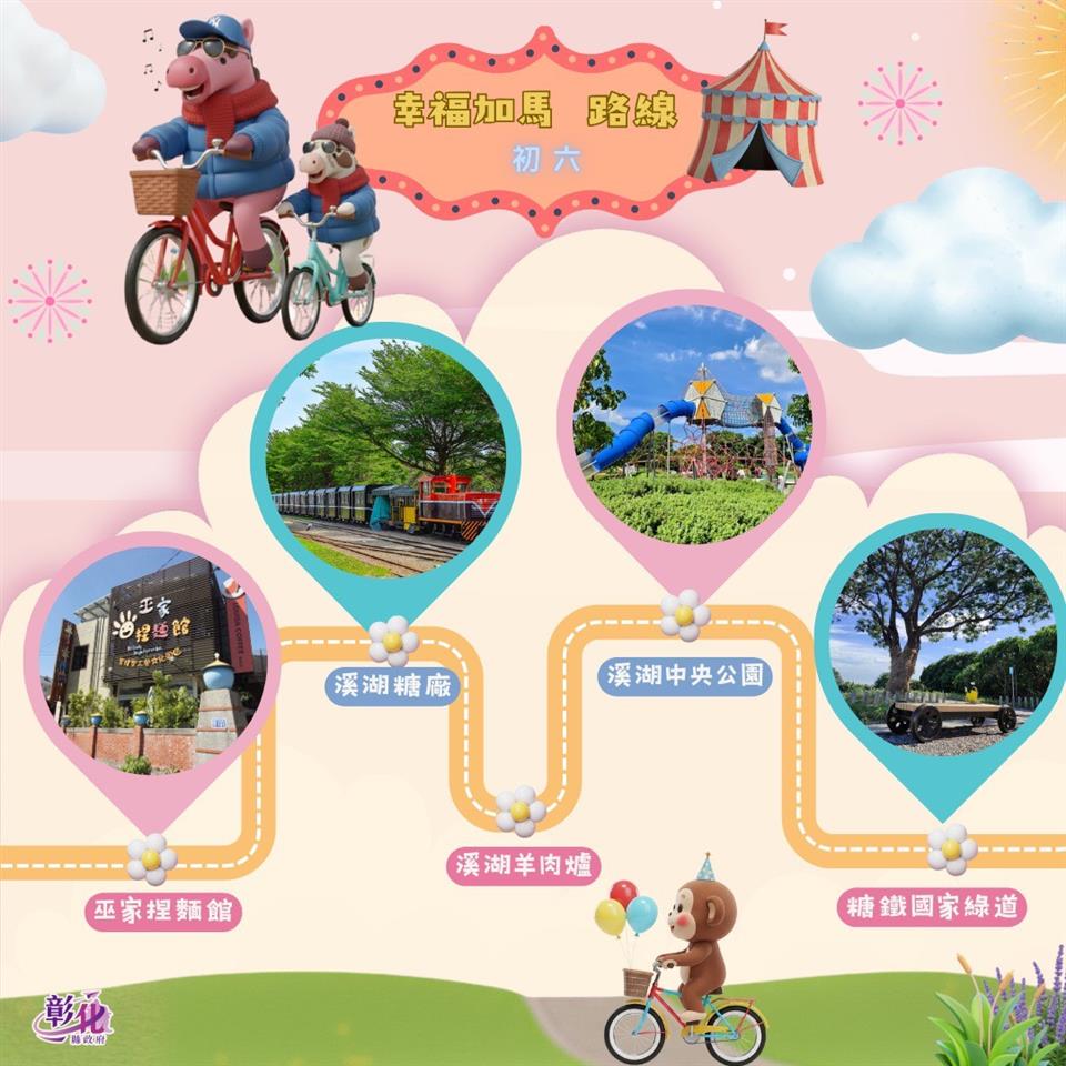觀光旅遊 2026 彰化新年走春攻略:馬不停蹄玩透透! 發布日期 2026/02/12~2026/03/12 | 發佈單位: 城市暨觀光發展處企劃發展科 | 發佈日期: 李科長 7532761分機2761 | 更新日期 2026/02/12 | 瀏覽人數: 98人 《置頂》 2026過年走春,就來彰化! 從山海風景到燈會光影, 漫步老街人情味到在地美食香氣, 白天賞花、夜晚賞燈,一路精彩不間斷 ✨ 不論你是—— 📸 愛拍照打卡 🌸 想賞花散心 👨👩👧👦 親子放電行程 🍜 尋找一口道地彰化味 初一到初六走春提案一次幫你整理好! 這個新年,就來彰化走春吧 👇 🔸 初一|一馬當先 從百年歷史的扇形車庫出發沿著城市紋理漫遊,登上八卦山大佛風景區俯瞰彰化風光;夜晚別錯過「2026 彰化月影燈季」,RODY 與小丸子陪你熱鬧迎新春 ✨ 🔸 初二|龍馬精神 走進藤山步道的自然綠意,探訪琉璃仙境的夢幻場景;午後漫遊員林市區,品嚐在地小吃;晚上接續「2026 員林燈會」,年味滿滿、燈火璀璨。 🔸 初三|馬到成功 走進鹿港百年巷弄,老街、古厝與廟宇交織出濃濃歷史風情;一次蒐集兩大「台灣觀光100亮點」,好逛、好吃、又好玩! 🔸 初四|走馬看花 初四接財神,也要走入花花世界!繽紛花海療癒身心,最適合全家大小一同踏青賞花。 🔸 初五|天馬行空 體驗觀光工廠的手作樂趣,一路延伸到海線風景。吹海風、看夕陽、吃蚵嗲,享受最道地的彰化海味。 🔸 初六|幸福加馬 收假前來場鐵道文化小旅行,輕鬆又療癒,吃一鍋暖心羊肉爐作收尾,迎向 2026,馬不停蹄,精彩可期。 💡 貼心提醒 春節期間人潮較多,出發前建議先確認各景點營業時間與人潮燈號,讓行程更順暢、玩得更盡興喔! 📱 別忘記愛玩彰化LINE集章抽大獎! 掃描 LINE QR Code 集章: 📍 2026 彰化月影燈季 集章時間:114/12/27-115/3/1 集章地點:遊客中心 📍 2026 花在彰化 集章時間:115/2/17-115/3/1 集章地點:大會服務台 📍 2026 員林燈會 集章時間:115/2/14-115/3/8 集章地點:大會服務台 👉 完成任 2 處即可參加抽獎 🎉 iPhone 17、Switch 2 等你帶回家!