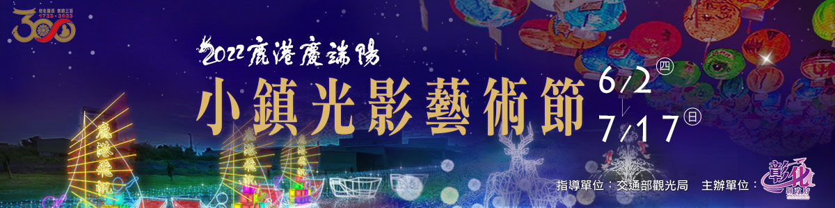 活動快訊 2022鹿港慶端陽-小鎮光影藝術節 歷史訊息 | 發布日期 2022/05/27~2022/07/24 | 發佈單位: 城市暨觀光發展處 | 發佈日期: 徐代理科長 7532739 | 更新日期 2022/05/26 | 瀏覽人數: 157人 時值彰化建縣300年前夕及傳統端午假期,彰化縣政府特別在鹿港街區及舊鹿港溪以炫麗燈光裝點小鎮,打造端午節慶氛圍,一路從中山路、老街、公會堂、桂花巷藝術村至舊鹿港溪,點亮整個鹿港小鎮,讓來到鹿港的觀光客,夜間也有璀璨的燈節可以欣賞,感受另一種鹿港風情。即日起至7月24日每晚7-10點,就在經典小鎮-鹿港,點亮幸福、點亮希望。 活動詳情(燈區資訊)