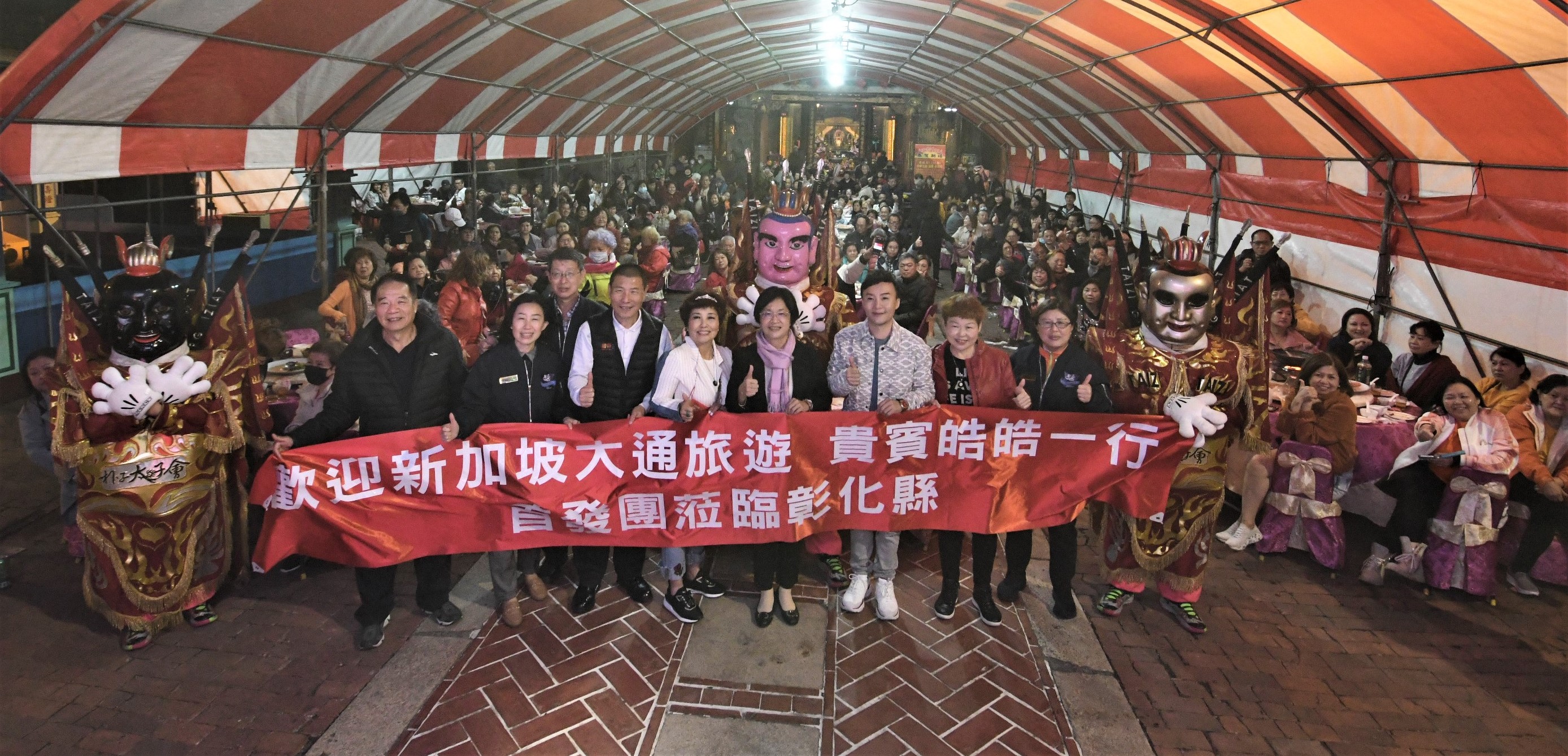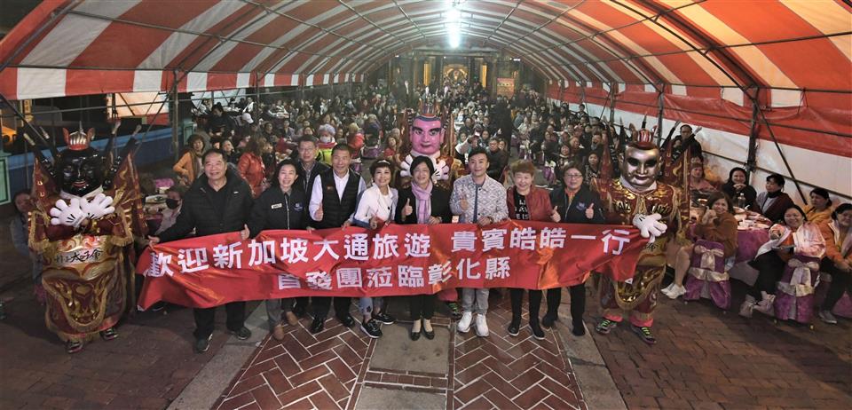 新聞焦點 彰化鹿港經典美食小吃宴 味美實在 新加坡遊客驚豔 歷史訊息 | 發布日期 2023/02/09~2023/03/09 | 發佈單位: 城市暨觀光發展處 | 發佈日期: 陳科長 7532781 | 更新日期 2023/02/09 | 瀏覽人數: 121人 隨著疫情逐步解封,各國推出各項旅遊方案吸引國際觀光客,彰化在8日一早即迎來第一波來自新加坡250人的國外旅客,8日晚上在鹿港新祖宮廟埕廣場品嚐鹿港辦桌的在地小吃宴,還有電音三太子及音樂表演,讓新加坡旅客享受聽覺和味覺雙重饗宴,帶動更多國際旅客前來彰化旅遊,將彰化在地文化、特色景點及美食小吃推向國際,拓展觀光商機,王縣長表示,她代表彰化縣民歡迎來自新加坡的旅客蒞臨彰化,也感謝藝人皓皓的號召,促成這次旅遊團。這次的鹿港經典美食小吃宴有蝦猴酥、手工芋丸、肉包、牛舌餅等等,藝人皓皓說,感謝王惠美縣長與彰化鄉親的熱情迎接,這次能吃到彰化鹿港在地的經典美食,每一道菜都味美實在,讓新加坡的遊客感到非常驚豔。 王縣長表示,感謝台灣與新加坡的旅行社攜手,將彰化的美、彰化的好呈現給遊客,這次安排來到鹿港新祖宮廟埕品嘗在地小吃宴,鹿港新祖宮,是全台唯一官廟,敕建天后宮,在清乾隆皇帝下旨敕建,是台灣唯一一座由君主下詔以官費興建的媽祖廟,因是天子御賜建廟,所以在廟前立有「文武官員至此下馬」碑,相傳在清代被視為官廟,只有官人能入內參拜,就連媽祖神像旁的千里眼、順風耳都是戴官帽、穿官服,這次在廟埕前讓大家品嘗在地小吃體驗辦桌文化,別具意義。 王縣長指出,這次行程有到已有百年歷史的彰化扇形車庫觀賞,也接著到魔菇部落,下午則來到芳苑海空步道品嘗珍珠蚵,還要去看有台版兼六園之稱的「成美文化園」,有十分特殊的造景能讓遊客欣賞,都是國內外觀光客來彰化必遊的景點。 城觀處表示,此次由新加坡大通旅遊和星光旅行社(三普旅遊集團)策畫,由從台灣到新加坡發展藝人皓皓(本名程世文)帶隊,為期一週結合台灣文化與美食的行程。此團約有250位旅客,其中2月7日至9日在彰化進行三天兩夜旅遊,兩晚留宿彰化,行程安排的景點,包括「扇形車庫」、「八卦山大佛風景區-天空步道」、「魔菇部落生態休閒農場」、「芳苑濕地潮間帶」、「鹿港老街」以及台版兼六園「成美文化園」,都是國內外觀光客來彰化必遊的景點。 與會貴賓有台北星光旅行社總經理李宜家、新加坡大通旅遊行銷總監卓瓊華、皓皓(程世文)、中彰區域觀光聯盟副總召集人吳世長、旅奇週刊總裁何昭璋、城市暨觀光發展處長王瑩琦、縣政顧問洪文能、施正雄等人。