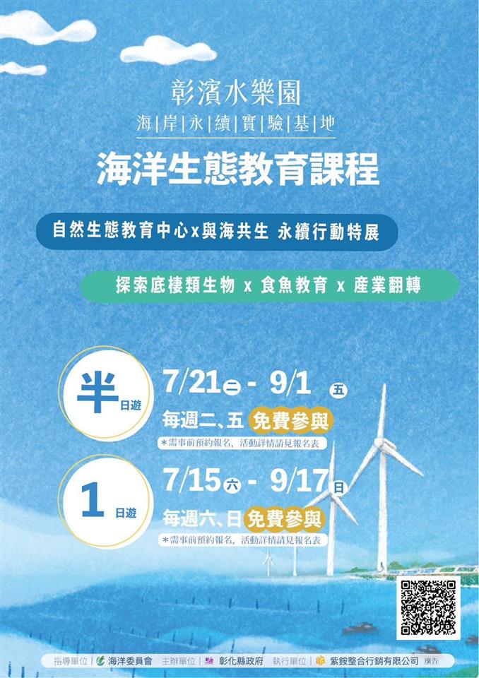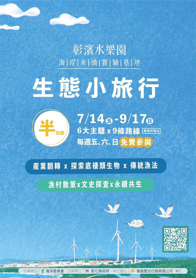 活動快訊 🌊 暑假出發!🅣🅡🅐🅥🅔🅛 #免費玩 大小朋友~一起來彰化濱海生態大冒險!🐠🌴 歷史訊息 | 發布日期 2023/07/11~2023/12/31 | 發佈單位: 城市暨觀光發展處 | 發佈日期: 鄭科長 7532791分機2791 | 更新日期 2023/07/11 | 瀏覽人數: 124人 🌊 暑假出發!🅣🅡🅐🅥🅔🅛 #免費玩 大小朋友~一起來彰化濱海生態大冒險!🐠🌴 🐬#彰濱水樂園 於7-9月暑假期間以海洋、生態、文化為主題,推出「海洋生態教育課程」和「生態體驗小旅行」兩大活動,從自然風光到文化遺產;從環境教育到娛樂活動,透過旅行探索西濱吧! 👉活動將於7/8(六)開放報名 🌊「海洋生態教育課程」 探索濕地底棲生物的奧秘,認識濱海生態之美! 🔗 立即報名: https://shorturl.at/nCT03 🌊「生態體驗小旅行」 深入彰濱海岸線的迷人景點,從線西塭仔港魚港到鹿港台灣玻璃館,一路上品味當地的歷史、文化和美食。讓我們一同創造難忘的回憶吧! 🔗 立即報名: https://shorturl.at/dewFH 📢 快來參加這個暑假最熱鬧的活動!帶著好奇心和家人一同展開彰化濱海的冒險之旅吧!記得提前報名,別錯過這難得的機會!🏖️ 活動詳情 https://shorturl.at/aiHT0 _ 🏄彰濱~海𝙁𝙐𝙉一夏慶安水樂園🌊 活動網站| https://is.gd/X46GUY #彰濱水樂園 #海洋生態教育課程 #生態體驗小旅行 #暑假活動 #暑假親子遊彰化 #彰化濱海童趣大冒險 #親子旅遊