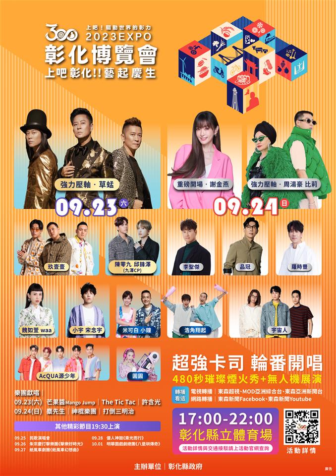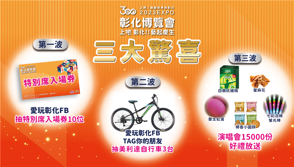新聞焦點 「上吧 彰化!! 藝起慶生」演唱會 超強卡司引爆藝術狂潮 歡慶彰化縣建縣300年,多項系列活動震撼登場9/23至10/1止 歷史訊息 | 發布日期 2023/08/18~2023/09/18 | 發佈單位: 城市暨觀光發展處 | 發佈日期: 李科長 7532761 | 更新日期 2023/08/18 | 瀏覽人數: 127人 迎接彰化建縣300年慶典活動進入高潮,全台最炙手可熱的「上吧 彰化!! 藝起慶生」演唱會即將在9月23日及9月24日在彰化縣立體育場盛大登場。今(18)日上午在縣府中庭舉辦宣傳記者會,該盛會聚集了超強卡司,包含「超強回憶殺」草蜢、「巨星母子」周湯豪x比莉、「動感天后」謝金燕、宇宙人,九澤CP(陳零九+邱鋒澤)、魏如萱、宋念宇(小宇)、玖壹壹、李聖傑、羅時豐、品冠、麋先生 MIXER、源少年、神棍樂團ZenKwun、許含光、The Tic Tac、打倒三明治Sandwich Fail、芒果醬 Mango Jump等共18組華麗陣容,現場搭配480秒華麗璀璨煙火、300台無人機,陪民眾一起點燃音樂狂潮。 王縣長表示,彰化縣從1723年建縣至今有300年的歷史,感謝先人的用心與努力,讓這塊土地賦予文化,讓鄉親能豐衣足食,歡慶彰化建縣300年,向大家預告縣府自9月23日至10月1日在彰化縣立體育館有彰化300博覽會,展出對於彰化過去、現在以及未來願景的展覽,同時在縣立體育場每天則有不同的演出節目,屆時歡迎大家一起來參與。 王縣長表示,「上吧(台語/三百) 彰化!!藝起慶生」演唱會,一連二天,於9月23日、24日在彰化縣立體育場,9月23日演唱會壓軸是紅遍港台的草蜢,他們在3月在小巨蛋開唱,10月又將在高雄加場的殿堂級唱跳團體,還有5月在台北小巨蛋演出實力歌手的娃娃-魏如萱,剛在海外辦完演唱會,預計11月年底合體辦演唱會的九澤CP,另外,9月24日演唱會由謝金燕重磅開場,壓軸則是6月才在高雄巨蛋辦完演唱會的最潮母子組合比莉跟周湯豪,還有7月在台北流行音樂中心開唱備受矚目的麋先生、獲得2023金曲獎最佳樂團的宇宙人、以及彰化鄉親神棍樂團等表演,匯聚了來自各音樂類型18組最強卡司,這次不用南北、海外到處跑、也不用守著電腦搶票,都在彰化免費唱給大家聽,還有480秒的精彩煙火加無人機秀,記得來彰化還有很多好康等著您。 王縣長指出,除了2天的演唱會來打頭陣之外,接著,9月25日有民歌演唱、26日有朱宗慶打擊樂團、27日有紙風車劇團、28日有優人神鼓、10月1日有明華園總團孫翠鳳帶來為彰化量身打造的紀念大戲《八堡圳傳奇》,此外,9月29日更在員林市圓林園由「明華園總團」孫翠鳳加碼演出,這是特別商請明華園為彰化建縣300年所演出的歌仔戲,大家可以期待一下,歡迎大家前來共襄盛舉。 城市暨觀光發展處表示,這場「上吧 彰化!! 藝起慶生」表演活動讓全國民眾照過來,從最強卡司打開建縣三百序幕,到多元跨界的表演藝術盛宴,還有包括「彰化300博覽會」(9/23~10/1)、逾百攤的「選品市集」及親子活動等,歡迎大家相揪來𨑨迌!此外,為讓全國鄉親共同感受彰化三百歲的喜悅,此外,9月23日至10月1日晚會活動再加碼,有三千顆慶生紅蛋派送,現場贈送在地好禮白蘭氏雞精、田中名產蜜麻花、台灣優格餅乾學院數字蔬菜餅乾…等,共一萬兩千份好禮贈送給現場參與的民眾。接下來兩周的活動場外也將送出限量的贈送餅乾、文創杯墊、青發處環保袋等好禮,讓我們一同歡聚,共度難忘的時光!線上也有慶生祝福串聯,只要透過「愛玩彰化FB」PO文「彰化三百 生日快樂」並tag三位好友,即有機會參加抽獎,得到市價3,980元的美利達自行車。 為避免交通擁擠,彰化縣政府規劃市區接駁車,呼籲民眾踴躍搭乘前往演唱會現場,方便更多粉絲朋友一同參與這場盛會,相關活動資訊請上愛玩彰化FB或彰化縣旅遊資訊網查詢。另彰化縣政府補充提到,本次演唱會邀請草蜢隊跨海演出,依照法規程序申請中。 與會貴賓還有縣議員陳玉姬、洪本成、張春洋、陳重嘉、溪湖鎮長何炳樺、溪湖鎮民代表會副主席黃佳惠、交通部觀光局參山國家風景區管理處秘書蔡崇雄、彰化縣旅遊產業協會秘書長湯凱杰、彰化縣遊覽車商業同業公會理事長詹志啟、台灣優格餅乾學院副總經理曾明哲、白蘭氏健康博物館長余惠芬、台明將副董事長林肇騫、紙風車文教基金會執行長張敏宜、彰化市長樂社區發展協會理事長黃惠足、縣府秘書長陳逸玲、城市暨觀光發展處長王瑩琦、新聞處長李俊德、計畫處長施敏華、文化局長張雀芬、警察局主任秘書程純濱、各級民代與地方仕紳等人。
