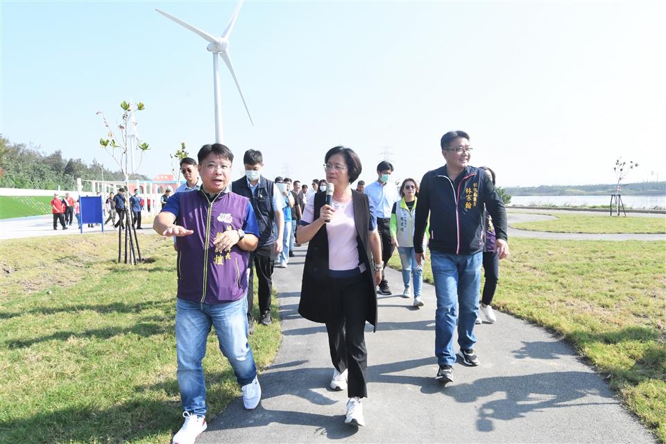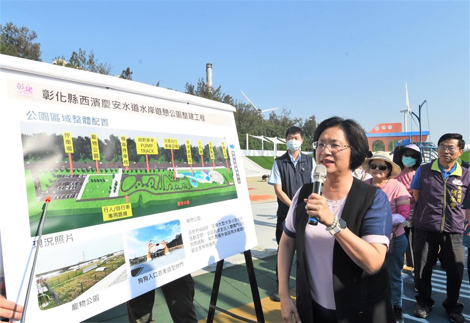 新聞焦點 視察西濱慶安水道水岸遊憩公園 年底將完工 歷史訊息 | 發布日期 2023/11/02~2023/12/02 | 發佈單位: 城市暨觀光發展處 | 發佈日期: 建設工程科蔡科長 7532771 | 更新日期 2023/11/02 | 瀏覽人數: 125人 彰化縣政府為了進一步提升西濱沿海觀光遊憩功能,斥資5,208萬餘元,在伸港自然生態教育中心(白色海豚屋)旁新闢「西濱慶安水道水岸遊憩公園」,縣長王惠美今(2)日上午前往工地視察,瞭解工程進度,公園預計在今年底竣工驗收,讓民眾來到西濱除了白色海豚屋外,還能擁有更多休憩及遊戲空間。 王縣長表示,為了讓彰化沿海的居民有更好的休閒場所,以及要串聯西濱海岸線的觀光,縣府在白色海豚屋旁,新建了一座長525公尺、寬51公尺、面積2.7公頃的多功能西濱沿海特色公園,公園富含海洋意象元素,有占地約468坪的寵物公園、具地形變化的越野單車PUMP TRACK場地,以及有許多海洋造型遊具設施的海洋遊樂場,像是寬約17米的大船造型溜滑梯及鯨魚造型攀爬遊具等等,期望公園開放後,讓民眾擁有一座適合一家老少還能帶著寵物遊玩的休憩公園。感謝議長謝典林及所有議員對預算的支持,才能讓白色海豚屋旁這一塊原本雜草叢生的空地煥然一新,成為一座適合民眾休憩的好場所。 王縣長指出,公園新建工程即將完工,公園建設完成後,縣府還規劃要興建一條景觀跨海橋,串聯烏溪自行車廊道、伸港自然生態教育中心、塭仔漁港、王功漁港、海空步道等知名景點,讓彰化61公里的海岸線成為鄉親最愛來的觀光休憩場所。 城觀處表示,彰化縣西濱沿海擁有豐富的生態資源,伸港的自然生態教育中心位於慶安水道旁,可以串聯大肚溪口國家級重要濕地,具有很好的區位條件,近年來縣府積極將其打造成為熱門的旅遊景點,連續2年於慶安水道舉辦了彰濱水樂園活動,讓民眾可以體驗SUP、獨木舟、水上自行車等項目,並於上個月在自然生態教育中心舉辦完彰濱水樂園-永續海岸實驗基地「與海共生•永續行動」成果展,讓在地民眾對地方有更多的認識。 另外,為了讓民眾對新公園有認同及親近感,縣府舉辦「西濱慶安水道公園命名活動」,集徵民眾的創意名稱,再由民眾線上投票選出理想的公園名稱,縣府將抽出10位參與網路投票民眾,可獲得500元禮券。活動已接近尾聲(11/10截止),歡迎民眾把握時間,踴躍參加。 與會關心人員還有縣議員林宗翰、周君綾、伸港鄉長黃永欽、線西鄉長蘇韋峻、線西鄉民代表會主席王水波、縣政顧問柯永豐、縣府城市暨觀光發展處長王瑩琦、秘書曾國貴與各級民意代表、地方仕紳等。