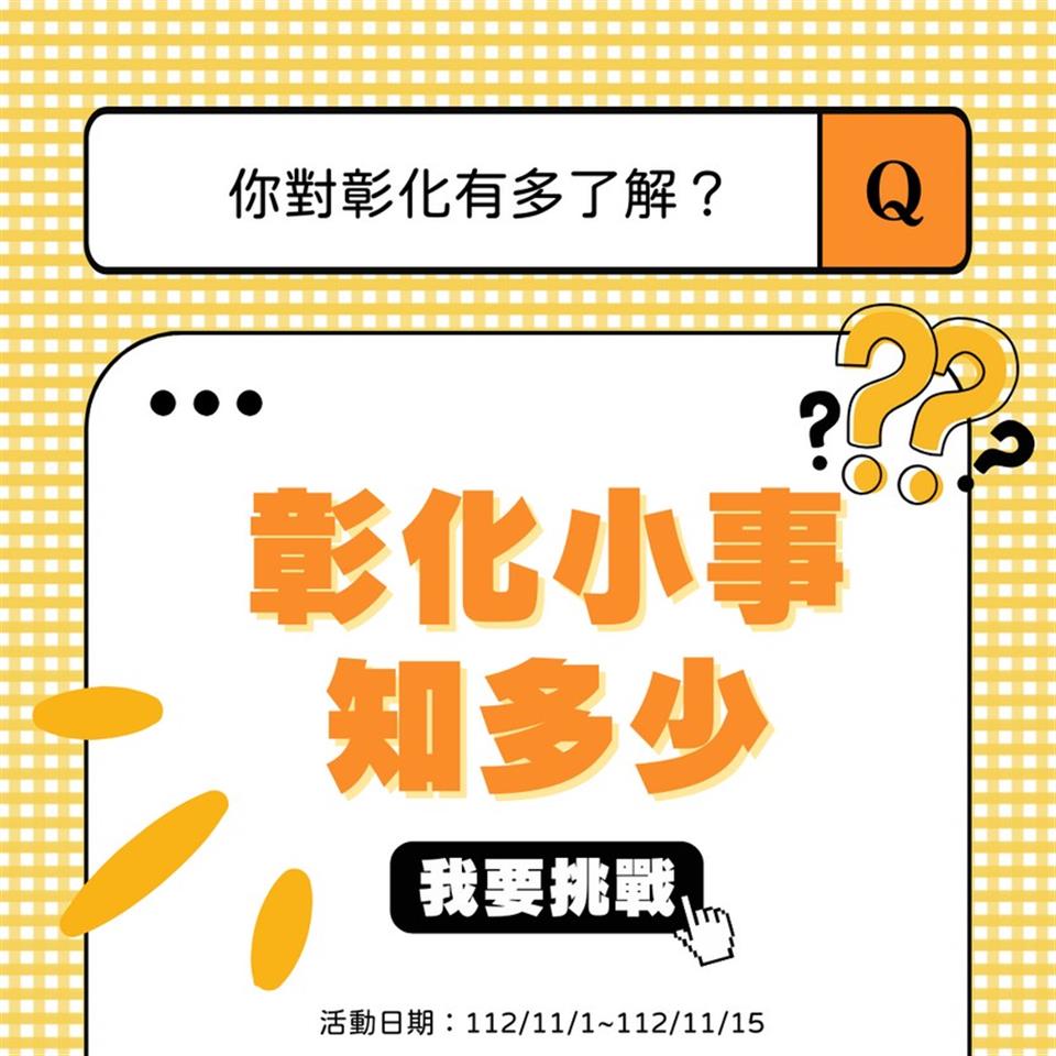 活動快訊 彰化達人站出來 愛玩彰化LINE-彰化小事知多少大挑戰!!! 歷史訊息 | 發布日期 2023/11/02~2023/12/31 | 發佈單位: 城市暨觀光發展處 | 發佈日期: 李科長 7532761分機2761 | 更新日期 2023/11/02 | 瀏覽人數: 122人 彰化達人站出來 愛玩彰化LINE-彰化小事知多少大挑戰!!! 活動辦法 1.即日起至11/15 2.加入愛玩彰化官方LINE( 點擊 https://lin.ee/pu74mFM 或搜尋ID:@playchanghua) 3.點開主選單上排「趣味小遊戲」來測驗看看你對彰化的了解程度 4.答對者請用手機截圖「恭喜獲得彰化知識王!稱號」頁面,並上傳至臉書貼文下方留言,就有機會抽中「2023台灣好行」手機背帶1個,預計抽出3位幸運得獎者哦!