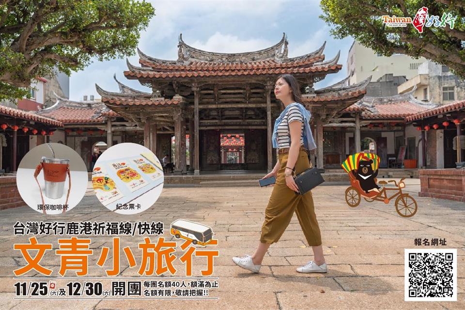 活動快訊 2023台灣好行(鹿港祈福線/快線)-文青小旅行11/25、12/30開團 歷史訊息 | 發布日期 2023/11/20~2023/12/31 | 發佈單位: 城市暨觀光發展處 | 發佈日期: 李科長 7532761分機2761 | 更新日期 2023/11/20 | 瀏覽人數: 116人 #更新 已全數額滿! 感謝大家踴躍的參與😍 _ 親愛的鹿港祈福線粉絲們: 🚌盡情暢遊鹿港文青小旅行 11/25(週六)或12/30(週六)任選1天,享受玩遍鹿港的精彩一日遊程 "只要250元"(每班次僅有40個名額) 漫遊老街、參訪天后宮、品嚐美食、觀光工廠巡禮,讓專業的導覽解說帶著您充分感受鹿港的魅力! 🤩報名參加文青小旅行 #即贈 「精緻雷雕304不銹鋼環保咖啡杯」、「優惠店家折價券」,讓您的旅程更加美好。 另外還有限量精裝版紀念悠遊卡可加購,只有參加本次活動的朋友才能搶先購得(每人限購一套)! 👉👉手刀點選以下連結報名吧! 這麼划算的行程,晚來可就錯過囉🏃🏻♂️ #期待與您一同度過美好的鹿港時光!