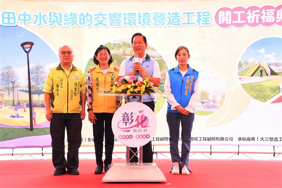 新聞焦點 彰化田中水與綠的交響環境 打造田中高鐵三公園一廊道 歷史訊息 | 發布日期 2023/12/11~2024/01/11 | 發佈單位: 城市暨觀光發展處 | 發佈日期: 建設工程科蔡科長 7532771 | 更新日期 2023/12/11 | 瀏覽人數: 143人 彰化縣政府斥資總經費9,500萬元,在田中高鐵彰化站附近推動「田中水與綠的交響環境營造工程計畫」,於今(11)日上午在預將在站區附近施作的田中鎮滯洪池公園(高鐵二路三段與站區十路口)辦理開工祈福典禮,彰化縣長王惠美、田中鎮長蕭淑芬、社頭鄉長蕭浚二、議員、民代等人,共同祈求工程順利進行,期待完工後在彰化高鐵特定區內營造具特色景觀的公園綠地、體健設施、親子共融遊憩設施及花木寵物公園,提供當地居民及遊客最完整、最有趣的觀光遊憩空間場域。 王縣長表示,「田中水與綠的交響環境營造工程」占地3.72公頃,共有二部分,一是由彰化縣政府縣府團隊經過各縣市的競爭型評比,向國土署爭取到「城鎮風貌及創生環境營造計畫」經費補助,未來將在站區附近新規劃三處公園,包括現地滯洪池公園,更有長達2.2公里的銜接社頭到田中的綠色廊道,獲中央補助4,980萬元,縣政府感謝議長謝典林及所有議員對經費的支持,配合款1,020萬元,總計經費6,000萬元。 王縣長指出,另外,縣府為了打造更好的親子環境,再挹注3,500萬元,未來在滯洪池公園辦理共融式親子遊戲場設施,規劃有6.7米高的熊造型遊戲主塔區、獅子造型滑索區、叢林擺盪區、兒童沙坑區及休憩爬網區等全齡層共融遊戲空間,讓孩子有遊玩的好空間。也感謝田中鎮公所、民意代表及里長的用心,在施作前提供各方的意見,彰化縣目前已有超過45處通過檢驗的兒童遊戲場,期待未來完成後,能更加符合鄉親的需求。 田中鎮長蕭淑芬表示,感謝王惠美縣長縣府團隊非常用心,在田中鎮規劃這麼好的遊憩空間,除了遊憩空間之外,在對面的三民社區還有托嬰中心、社區活動中心等,有王縣長這麼支持在地的建設,相信透過建設讓地方能發展,讓人民百姓能看到地方的進步,這樣人口外流的速度就會減緩。 城觀處表示,為了打造彰化高鐵特定區優質景觀遊憩空間,彰化縣府向國土署爭取「城鎮風貌及創生環境營造計畫(競爭型)」經費補助,中央補助4,980萬,縣政府配合款1,020萬元總計經費6,000萬元,執行重點目標在於回應氣候變遷調適策略、淨零碳排及以自然為本的環境設計,並以簡單好用、好維護、好管理的原則設計,多種植原生樹種並增加綠地面積,打造綠色基盤;另縣府為提升特色亮點公園空間營造,再挹注縣款3,500萬元辦理具主題特色的共融式親子遊戲場設施,施作內容包含約6.7米高的熊造型遊戲主塔區、獅子造型滑索區、叢林擺盪區、兒童沙坑區及休憩爬網區等全齡層共融遊戲空間,發展結合地方特色為主題性的共融遊具公園場域,營造高鐵站門戶新意象,全計畫案總經費9,500萬元,預計於113年底前完工。 與會貴賓還有縣議員鄭俊雄、蕭妤亘、詹琬惠、田中鎮長蕭淑芬、社頭鄉長蕭浚二、田中鎮民代表會主席曾福傳、社頭鄉民代表會主席陳慶福、縣議員許書維服務團隊、大三營造工程股份有限公司負責人陳玄惠、鵬程工程顧問有限公司負責人彭成麒、吉野工程顧問有限公司總經理王偉哲、縣府城市暨觀光發展處長王瑩琦、副處長洪世益、各級民意代表與地方仕紳等人。