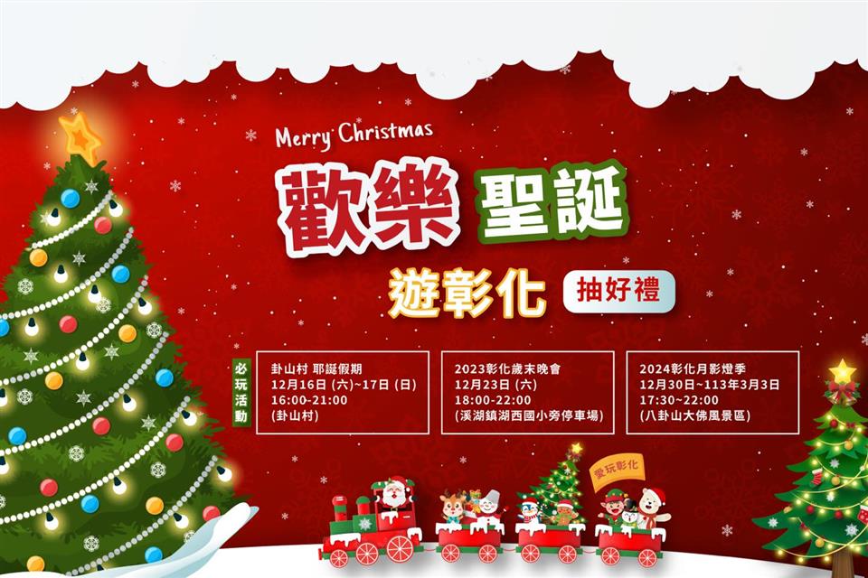 活動快訊 🔔𝓜𝓮𝓻𝓻𝔂 𝓒𝓱𝓻𝓲𝓼𝓽𝓶𝓪𝓼🔔 歡樂聖誕遊彰化🎄 #文末抽獎 歷史訊息 | 發布日期 2023/12/13~2024/01/13 | 發佈單位: 城市暨觀光發展處 | 發佈日期: 李科長 7532761分機2761 | 更新日期 2023/12/13 | 瀏覽人數: 137人 🔔𝓜𝓮𝓻𝓻𝔂 𝓒𝓱𝓻𝓲𝓼𝓽𝓶𝓪𝓼🔔 歡樂聖誕遊彰化🎄 #文末抽獎 🎅🏻叮叮噹~☃️ 今年的聖誕結你想怎麼度過⁉️ 約上家人、好友 來場最𝓕𝓤𝓝的聖誕之旅吧❗️ #12月超嗨必玩活動❄️ 【卦山村 耶誕假期】 🎄活 動 日 期:12月16日 (六)~17日 (日) 🎄活 動 時 間:16:00-21:00 🎄活 動 地 點:卦山村(彰化縣卦山路8-1號) 【2023彰化歲末晚會】#動力火車 獻唱經典 🎄活 動 時 間:12月23日 (六) 🎄活 動 時 間:18:00-22:00 🎄活 動 地 點:溪湖鎮湖西國小旁停車場 【2024彰化月影燈季】 🎄 活 動 時 間:12月30日~113年3月3日 🎄 點 燈 時 間: 17:30~22:00 🎄 活 動 地 點:八卦山大佛風景區 在聖誕節的周末,戴上可愛的聖誕帽 與家人、好友一同漫遊彰化吧~🎅🏻💖 🎁===歡樂聖誕遊彰化====🎁 #抽好禮 全家禮券300元 活動期間:112年12月12日~112年12月17日 步驟1:按讚追蹤「愛玩彰化」粉絲專頁並轉發本次活動貼文 步驟2:在活動貼文留言推薦一個你最愛的彰化景點,並邀請好友來一趟彰化聖誕之旅! 步驟3:@3位好友 Merry Christmas🎅🏻一起去彰化XXX 旅遊吧! EX::@小明 @小花 @小圓 Merry Christmas🎅🏻一起去卦山村旅遊吧! _ #愛玩彰化 #聖誕遊彰化 #聖誕節 #歡樂 #歡樂耶誕 #MerryChristmas