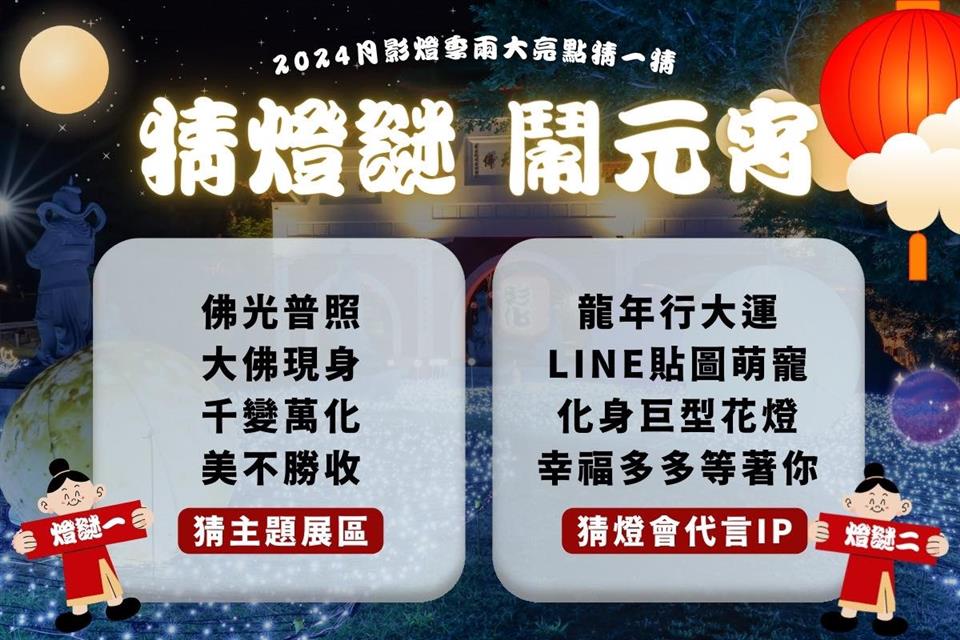 活動快訊 \2024月影燈季🌕賞燈會鬧元宵 #猜燈謎抽好禮/ 歷史訊息 | 發布日期 2024/02/20~2024/03/20 | 發佈單位: 城市暨觀光發展處 | 發佈日期: 李科長 7532761分機2761 | 更新日期 2024/02/20 | 瀏覽人數: 151人 \2024月影燈季🌕賞燈會鬧元宵 #猜燈謎抽好禮/ 月圓人圓 花好燈好 元宵佳節闔家大小到八卦山賞燈 璀璨奪目的光雕秀和燈海盛宴 陪伴大家歡樂慶元宵! 【#猜燈謎🏮鬧元宵】 只要於2024/2/25前答對本篇燈謎及完成下方步驟就有機會獲得超值好禮!! 1.按讚追蹤「愛玩彰化」粉絲專頁並轉發貼文 2.在活動貼文下方@ 3位好友 邀請他們元宵一起來彰化賞燈並答對圖片上的燈謎題目 EX:@小明 @小花 @小月元宵節一起去月影燈季賞燈!燈謎1:答案、燈謎2:答案 🎁星巴克飲品券2張 (共10組) 參與本次活動者即可參予抽獎 *保留3組予頭號粉絲* ➖2024彰化月影燈季-幸福多多龍Stay➖ 🌕活動地點:八卦山大佛風景區 🌕開燈時間:每日17:30-22:00 ‼️光雕秀時間:18:30-22:00 (每半小時一場)‼️ 🌕活動官網:https://www.2024ch.com.tw/ _ #2024月影燈季 #元宵節 #賞燈 #燈會 #彰化旅遊 #猜燈謎