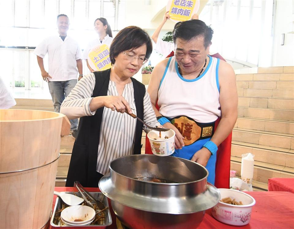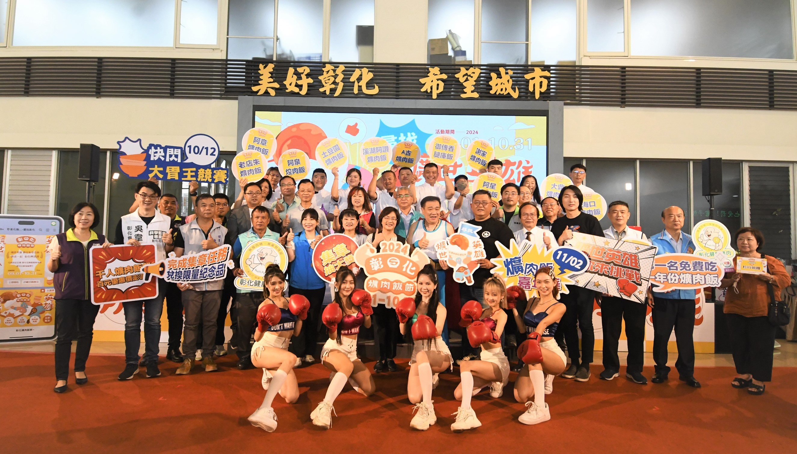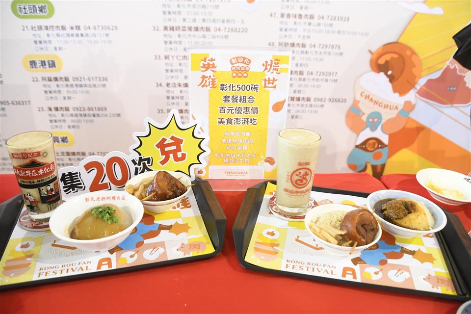 新聞焦點 2024彰化爌肉飯節 開跑 尋找爌世英雄 邀您彰化呷透透 歷史訊息 | 發布日期 2024/08/29~2024/09/29 | 發佈單位: 城市暨觀光發展處 | 發佈日期: 行銷推廣科 丁科長 04-7532781 | 更新日期 2024/08/29 | 瀏覽人數: 159人 彰化爌肉飯名聲響亮,彰化縣政府特舉辦「2024彰化爌肉飯節」,今(29)日上午在縣府中庭辦理宣傳記者會,縣府特別發揮創意巧思,將現場布置成拳擊擂台,象徵彰化爌肉飯制霸擂台,彰化縣長王惠美與爌肉飯店家、各級民代與會,且邀請藝人白雲身穿冠軍套裝扮成爌世英雄登場,一起為即將到來的爌世盛宴揭開序幕。王縣長表示,2024彰化縣爌肉飯節開跑,縣府自9月1日起至10月31日,為期二個月,辦理尋找爌世英雄數位集章活動,歡迎大家來彰化吃爌肉,參與集章活動,集3個章還能參加摸彩,此外,9月29日結合在田尾怡心園的彰化豚肉節活動,現場有快閃集章活動;10月12日在卦山村有大胃王比賽;11月2日在延平公園有爌肉飯嘉年華,只要100元就可以品嘗到在地小吃,限量1,000份,歡迎大家一起來參與。 王縣長表示,彰化爌肉飯從早到晚24小時都可以吃的到,美味不打烊,很多鄉親早上起床都要吃一碗爌肉飯來「通血路」,在新出爐的全台500碗美食名單中,彰化的爌肉飯占有一席之地,深受老饕的喜愛。這次縣府以尋找爌世英雄為主題,舉辦「彰化爌肉飯節」系列活動,邀請全國饕客來品嘗彰化在地好滋味。 王縣長指出,爌肉飯最多的城市非彰化莫屬,彰化爌肉有肥一點的、有瘦一點的,口感不一,各個店家口味獨特,縣府今天公布50家店家,在7月由鄉親及神秘客,推薦深受喜愛的爌肉飯店家,100多家,選出50家,且製成 Google美食地圖供大家參考,這50家店家,參與數位集章活動,自9月1日起至10月31日下午17:00止,鄉親凡到活動店家消費,即可透過「愛玩彰化」官方LINE(@playchanghua)帳號集章,集滿3個章可參加抽獎,獎品包含iPhone 15、Switch、氣炸鍋等好禮;累計5個章可兌換限量版「爌肉小子」鑰匙圈,累計20個章則可換取限量彰化古城紀念碗;累積最多章數的民眾,將獲得一年份365碗的免費爌肉飯餐券,成為本次活動的「爌世英雄」,第二名的也有100碗免費爌肉飯餐券,第三名的則有50碗免費爌肉飯餐券,集章越多,成為「爌世英雄」的機會就越高。 王縣長指出,彰化是全國第三大養豬產地,藉由這次爌肉飯節,也推廣「彰化健康豬」品牌,縣府會到畜牧場抽驗飼料、血液及肉品藥物殘留、最後還要有獸醫師把關,符合國家衛生標準、豬肉來源合法,讓大家吃得安心、買得放心。現在到彰化消費滿額還可以參加「2024彰化GO購」活動,最大獎是百萬油電車,來彰化既能吃到美味的彰化美食又能抽大獎,可說是一舉數得,誠摯邀請全國鄉親來趟彰化爌肉飯美食之旅。 城市暨觀光發展處表示,本次活動紀念品特別結合學生的創意,以本府去年(113年)AI創意發想競賽-彰化IP組優選「爌肉小子」作品的標語文字,製作成爌肉鑰匙圈宣傳品;另外,彰化隨時隨地可吃的爌肉飯,乃因舊時彰化古城商業繁華、飲宴需求大,培養許多辦桌師傅,後將飲宴菜餚精緻化,轉賣給市井小民演變而來的,故本次活動彰化古城紀念碗,以彰化建城四大城門意象製作,象徵彰化300多年來的文化底蘊,藉以邀請民眾來彰化,探索這些歷史悠久的城門,並享受地道的爌肉飯饗宴。 與會貴賓有縣議員温芝樺、陳玉姬、黃柏瑜、莊陞漢、吳韋達、蕭文雄、北斗鎮長顏宏霖、溪湖鎮公所副主任楊定欽、交通部觀光署參山國家風景區管理處秘書蔡崇雄、彰化縣農會總幹事張建豐、彰化縣肉品市場總經理陳國興、彰化縣養豬協會理事長陳筆輝、彰化縣家畜肉類商業同業公會總幹事王嘉仁、彰化縣創意美育協會會長許晉榮、彰化縣觀光導覽協會理事長施吉松、彰化縣彰化市大埔商圈發展協會理事長陳雯嘉、彰化縣彰化市永樂商圈發展協會理事長鍾正軒、共好創生協會理事長林建呈、彰化縣姊妹會創會長洪慧敏、彰化縣產業旅遊協會秘書湯凱杰、光南社區理事長蔡耀參、縣政諮議黃君韜、莊政強、縣政顧問許金龍、洪定謙、縣府秘書長蔡明娟、城市暨觀光發展處長王瑩琦、新聞處長李俊德、各級民代與地方仕紳等。 第二屆500碗之彰化爌肉飯名單: • 2碗:泉焢肉飯(第一屆獲得7碗奪冠) • 1碗:老店朱爌肉飯 隱藏版爌肉飯 Google 地圖:https://goo.gl/maps/2bAEvnq9w5jLv4Rm8?g_st=ac 更多詳情請上「2024彰化爌肉飯節」官方網站查詢:https://www.2024pkch.com.tw