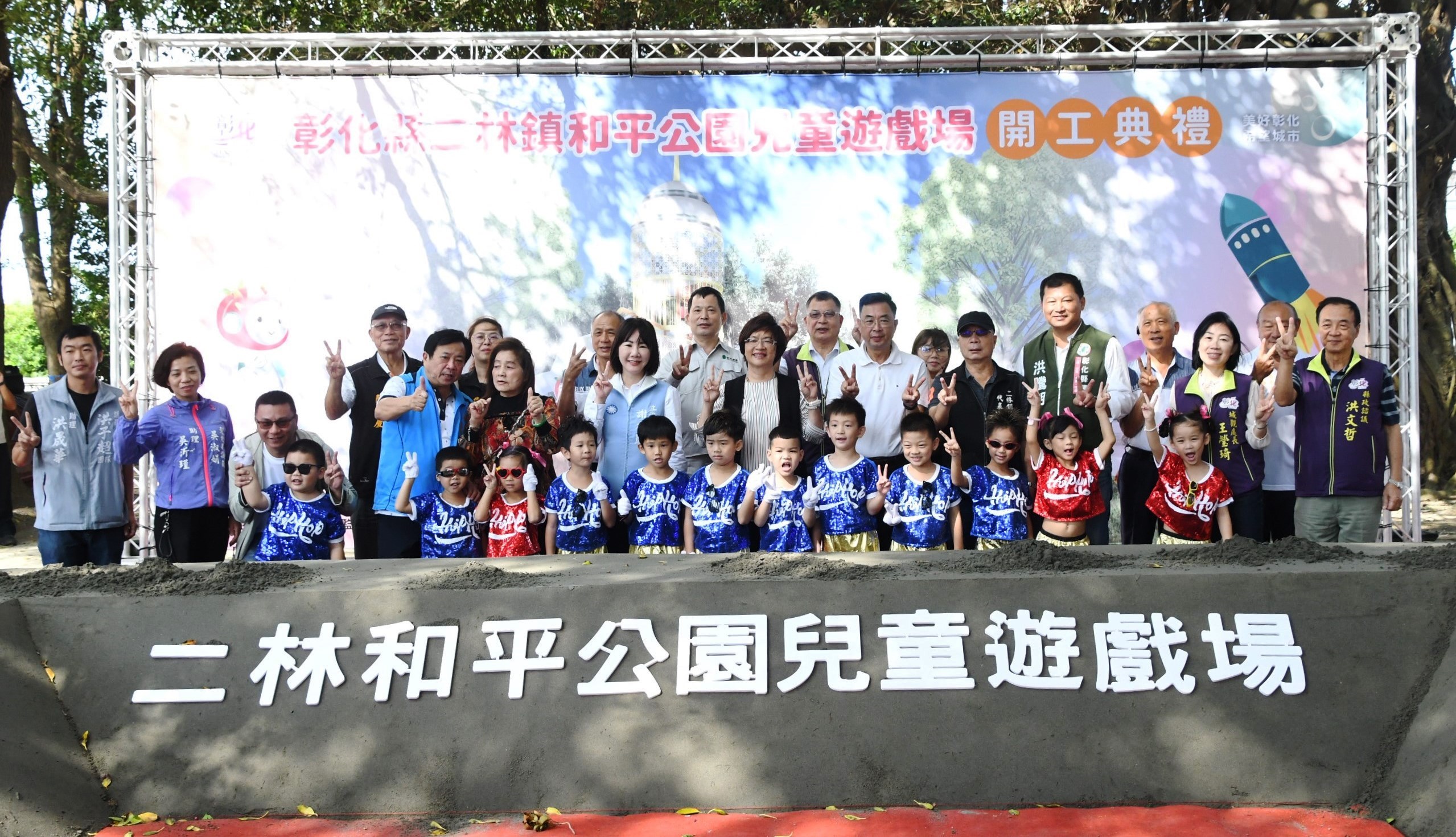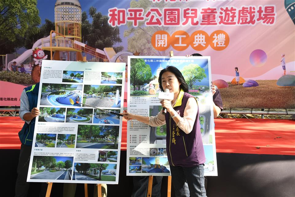新聞焦點 二林鎮和平公園 兒童遊戲場開工 打造星球探索樂園 期待成為新地標 歷史訊息 | 發布日期 2024/11/11~2024/12/11 | 發佈單位: 城市暨觀光發展處 | 發佈日期: 林科長 7532771 | 更新日期 2024/11/11 | 瀏覽人數: 160人 彰化縣政府為推動一鄉鎮一特色公園的目標,選定二林鎮和平公園進行環境及設施改善,該工程已於113年10月中旬完成發包,工期240日曆天,今(11)日上午舉行兒童遊戲場開工典禮,彰化縣長王惠美與各級民代等人與會。王縣長表示,感謝中央和議會的支持,總共投入3,235萬元,中央內政部補助350萬元,縣府在議長謝典林和議員們的預算支持下,自籌2,885萬元,和平公園兒童遊戲場占地超過1,000坪,以二林精密機械園區為發想,選擇以太空科技為主題,未來將打造成一個「星球探險樂園」,有14公尺高的太空梭造型遊具、溜滑梯、盪鞦韆、跳躍區、旋轉飛盤,並設有樂齡體健區以及250公尺的環狀步道,搭配「紅龍果寶寶」和涼亭,更將廁所進行升級,新增親子無障礙廁所,讓民眾享受安全、舒適的遊憩環境,預計明年7月底前完工,屆時期待成為新地標。 王縣長表示,為了讓孩子在成長過程中可以學習更加愉快,並且讓爸爸媽媽帶著孩子一起來享受童年,縣府在議會的支持下,結合公所,持續建設「共融公園」。近半年來,每到傍晚、假日,縣內新啟用的共融公園,總是吸引滿滿的親子人潮,有溪湖中央公園、員林兔馬鹿公園、三和公園、寵物運動公園、田尾怡心園、彰化大佛綠地森呼吸公園、延平公園、伸港嬉濱海豚公園、埔鹽冠軍神帽公園等等,共融遊戲公園不僅是展現了地方特色,更是吸引了許多外縣市的遊客前來遊玩。 立法委員謝衣鳯表示,彰化縣政府及彰化縣議會對於二林鎮非常重視,在和平公園興建極具特色的兒童遊戲場,讓大朋友小朋友都可以共同來同樂。 二林鎮長蔡詩傑表示,感謝縣政府挹注資金,讓二林鎮能不斷有大型建設,除了這次的公園以外,還有二林高中預定地的樂活運動館已進入討論階段,目前預算約有3億多元,王縣長也非常重視這個案子,期望八大生活區都能夠有體育運動中心,感謝縣府大力支持把案子送到中央,也感謝代表會、各里長們的用心爭取,希望未來能把二林建設得更好。 與會貴賓有立委謝衣鳯、縣議員陳一惇、洪騰明、張國棟、二林鎮長蔡詩傑、縣議員洪子超服務團隊、縣議員吳淑娟服務團隊、二林鎮民代表會主席許秀治、東和里長洪大順、縣政諮議洪文哲、縣政顧問陳名志、縣府城市暨觀光發展處長王瑩琦、新聞處長李俊德、城觀處副處長洪世益、彰化縣工商發展投資策進會副總幹事陳穎青、各級民代與地方仕紳等。