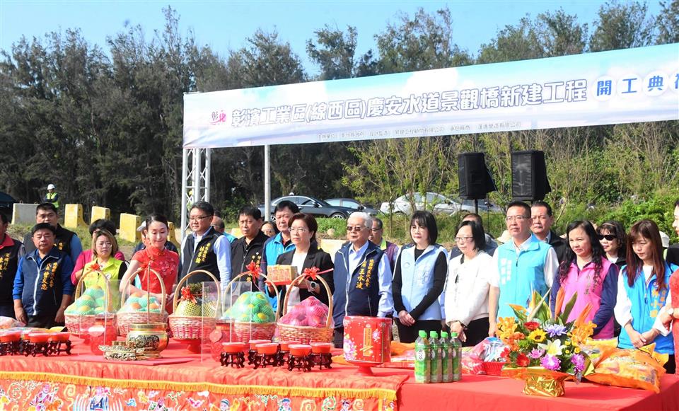 新聞焦點 投入1億元 彰濱慶安水道景觀橋開工 歷史訊息 | 發布日期 2024/11/25~2024/12/25 | 發佈單位: 城市暨觀光發展處 | 發佈日期: 林科長 7532771 | 更新日期 2024/11/25 | 瀏覽人數: 142人 彰化縣政府投入1億元經費,在彰濱工業區(線西區)慶安水道打造長達165公尺的景觀橋,連接台61線與塭仔漁港,供自行車及行人使用,工程於113年11月25日在線西區慶安道旁工址辦理開工祈福典禮,彰化縣長王惠美、經濟部產業園區管理局台中分局組長林怡妏與各級民代等人與會,共同祈求工程順利進行。王縣長表示,感謝經濟部工業局同意興建這座景觀橋,感謝議長謝典林及議員們對預算的支持,這項工程原本規劃7,800萬元,但歷經7次招標,因為這裡的潮汐、施工便道鋪設等有很多需克服的問題,所以流標7次,經過檢討、再檢討,第8次終於標出去了,也要感謝很勇敢的得標廠商,但是也要提醒廠商如期如質,115年的7月是最後完工日,只能更早不能延後,期待如期如質完工,未來成為重要觀光遊憩新地標,不僅提供自行車及行人使用,也將成為遊客拍照打卡的好景點。 王縣長表示,為了串連慶安水道遊憩自行車道與線西鄉塭仔漁港遊憩市集及周邊特色景點,完善濱海遊憩需求及觀光發展,這座景觀橋融入當地海洋與文化元素,設計採S形配合浪潮造型,雖然只有165公尺,但可以連結台61線到塭仔漁港,而縣府下一步也與區漁會共同努力來整建塭仔漁港,如此,一來形成一條觀光動線,串連台灣優格餅乾學院、興麥蛋捲烘焙王國等觀光工廠,以及在地特色產業,可以安排一日遊、二日遊都不是問題。 王縣長指出,彰濱慶安水道,已成為彰化縣發展西北角遊憩與觀光的重要資源,縣府除了打造慶安水道「彰濱水樂園」品牌,供民眾暑期體驗SUP、獨木舟、水上自行車等項目,沿岸又有「白色海豚屋」美名的彰化自然生態教育中心,加上已啟用的「嬉濱海豚公園」及周邊光環境優化,營造遊憩區夜間美景,近年來已成為熱門的旅遊景點,吸引大量遊客前往。這次景觀橋新建,期待將繼「白色海豚屋」後成為彰化縣西北角的重要景點。 經濟部產業園區管理局台中分局組長林怡妏表示,彰濱工業區的開發從民國80年代開始,已經將近四十年。這期間非常感謝縣府的努力與支持,包括對區內廠商的照顧,以及整體環境的規劃與建設。目前線西區即將進行整體規劃改善,以後會有更多在地居民可以來這裡生活,不僅讓工業區內的人安心工作,假日也可以帶著家人、甚至家中寵物,一起來享受生活,體現了兼顧生活、生態以及生產「三生一體」的理念,非常難得。這次感謝王惠美縣長縣府團隊的協助,還有立委及各級民代的支持,祝福工程順利完工。 立委謝衣鳯表示,感謝王惠美縣長縣府團隊對於推動觀光規劃的用心與努力,期待未來彰化的觀光和產業能夠越來越蓬勃發展,讓鄉親能有更多收入,新建跨海大橋以後帶來更多人潮,讓漁港更加繁榮發展。 縣議員林宗翰代表致詞時表示,彰化過去在觀光發展上比較缺乏,感謝王惠美縣長縣府團隊的用心與努力,王縣長任內首先推動烏溪廊道,接下來是濱二路,還有白色海豚屋附近的嬉濱海豚公園,以及今天這一座跨海景觀橋,可以說是線西伸港和美的一個重要願景,就是打造「一日觀光廊道」的概念,串聯塭仔漁港這一片區域,如今,這個夢想終於實現了,未來我們還要進一步改善塭仔漁港周邊環境,讓整體規劃更加完善,並帶動濱海地區的觀光發展。 線西鄉長蘇韋峻代表致詞時表示,感謝王惠美縣長縣府團隊對線西鄉建設的用心,團隊也常來公所跟地方一起討論,其實地方上很早之前就已提出景觀橋的建議和想法,經過多年之後,終於看到要實現且即將開工,因為塭仔港是線西非常重要的一個觀光景點,非常感謝過去以及現在所有為這座景觀橋努力的所有人,希望景觀橋將景點串連後,能夠帶動更多的觀光客來線西遊玩。 與會貴賓有經濟部產業園區管理局台中分局組長林怡妏、立法委員謝衣鳯、縣議員林宗翰、周君綾、賴清美、柯振杯、林小琪、蕭文雄、經濟部產業園區管理局台中分局長紀世宗、線西鄉長蘇韋峻、伸港鄉長黃永欽、線西鄉民代表會主席王水波、副主席許富榮、伸港鄉民代表會副主席周宥棋、彰化區漁會理事長林明壽、總幹事陳威谷、常務監事陳宗義、線西鄉農會理事長楊玲珠、總幹事王嘉琪、彰化縣彰濱產業園區廠協會理事長何鳳慈、彰化縣鹿港彰濱產業園區廠協會理事長林碧鬆、蓬進營造有限公司負責人柯義輝、設計監造單位昇鍠工程顧問有限公司負責人游裕民、合作金庫和美分行副理賴國樑、縣府城觀處長王瑩琦、副處長洪世益、縣政顧問柯永豐、謝海瑞、卓賢民、陳錫鐓、縣政諮議王敬傑、各級代表及地方仕紳等。