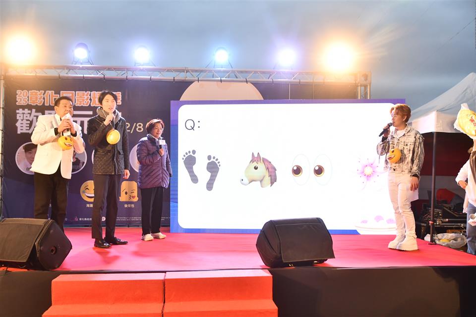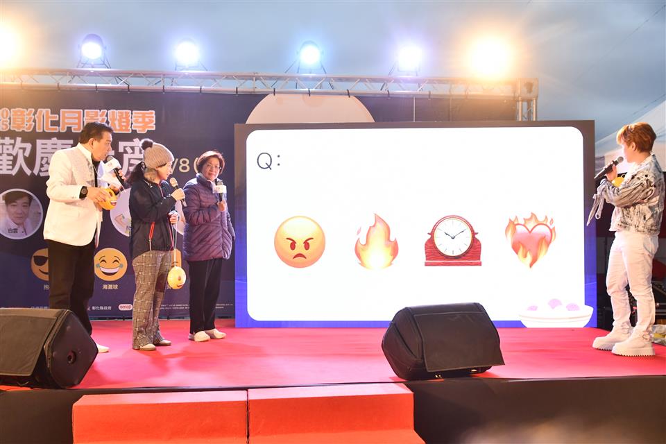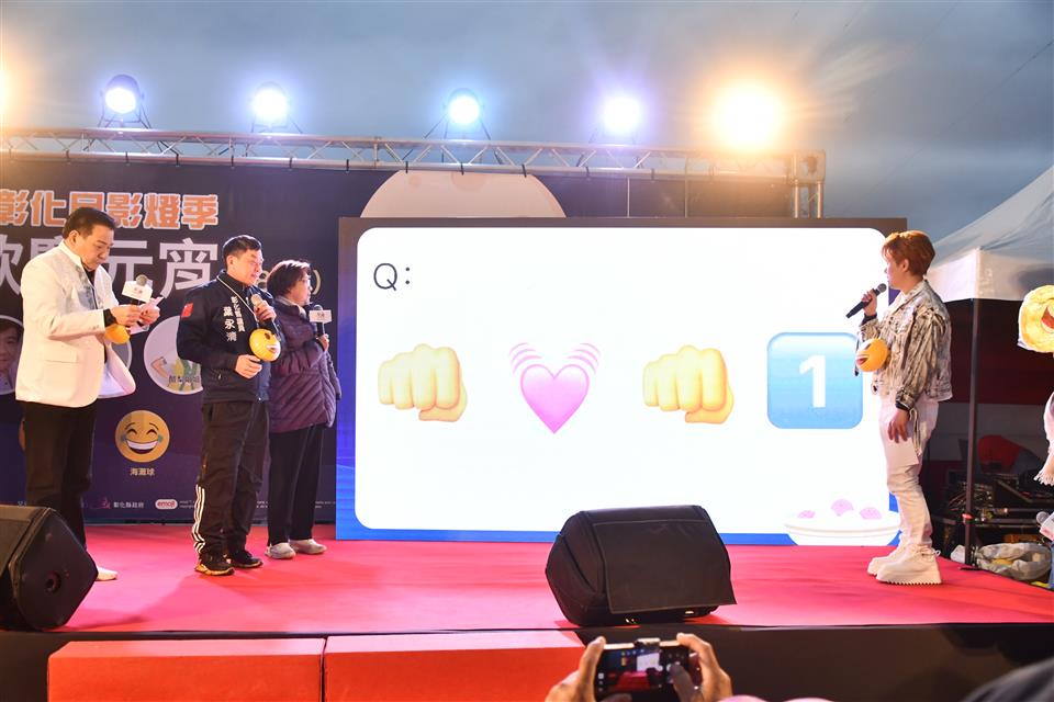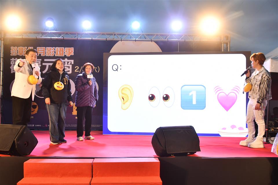 新聞焦點 另類燈謎 emoji猜成語 2025彰化月影燈季 歡慶元宵猜燈謎 歷史訊息 | 發布日期 2025/02/08~2025/03/08 | 發佈單位: 城市暨觀光發展處 | 發佈日期: 丁科長 7532781 | 更新日期 2025/02/08 | 瀏覽人數: 112人 2025彰化月影燈季系列活動-歡慶元宵,於(2/8)晚上元宵節前舉辦,彰化縣長王惠美與知名藝人白雲、陳孟賢、民代等人,和現場民眾互動猜燈謎,由emoji符號組成的謎題,考驗民眾的眼力及腦力,並準備可愛emoji周邊小物,吸引民眾爭相搶答,還穿插精彩表演,雖然天氣冷颼颼,現場民眾熱情不減,歡笑不斷,提前一起歡慶元宵,現場也發放2000個emoji小提燈,吸引民眾大排長龍。王縣長表示,2025彰化月影燈季在八卦山大佛風景區,從開幕至今已經有超過百萬人次前來,今天特別發放不同的emoji表情小提燈,現場也邀請白雲、陳孟賢,還有YOYO家族的哥哥、姐姐來跟大家同樂,讓大家在元宵節前一起歡樂猜燈謎,看表演,歡喜迎新的一年。 王縣長表示,2025彰化月影燈季展出到3月2日止,每天晚上5點30分至10點,每半小時就有燈光秀表演,園區內還有很多emoji表情燈飾,營造emoji樂園,歡迎大家來走走。另外「2025花在彰化在溪州公園,自大年初一到十五(114年1月29日至2月12日),邀請大家把握最後這幾天,一起來賞花看花。 王縣長指出,2025彰化月影燈季結合觀光署台灣觀光100亮點,在彰化有5個景點,包括八卦山大佛、扇形車庫、鹿港老街、田尾公路花園、台灣優格餅乾學院,再加上3個景點,「2025花在彰化」、「員林燈會」、「彰化自然生態教育中心」,共8個景點辦理集章活動,以LINE掃描指定QRcode,完成兩個即獲得1次抽獎資格,最高累計4次抽獎機會,有iphone15、switch等豐富獎項,完成5個章還可以兌換限量彰化紀念傘,歡迎大家來彰化,吃美食,賞美景,把錢花在彰化。 城觀處表示,除了晚上欣賞2025彰化月影燈季,白天可到前述地點一遊集章,更希望遊客可以住宿彰化,以輕鬆的腳步遊彰化,欣賞彰化各地人文風情,品嘗彰化特色美食,更不能錯過入選第一屆、第二屆台灣500碗的彰化美食,彰化真的有料又好玩;另外月影燈季期間規劃有系列精彩活動,相關資訊可到官方網頁查詢,並關注「愛玩彰化」臉書。 (https://ch-emoji.mystrikingly.com/) 與會貴賓還有彰化縣議員温芝樺、葉永清、黃柏瑜、卦山里長邱妙珠、縣府城觀處長王瑩琦、副處長洪世益等人。