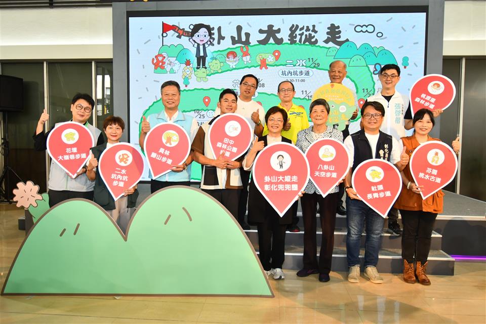 新聞焦點 「2025卦山大縱走 彰化兜兜圈」活動開跑 卦山縱走樂探索 完登步道集徽章 歷史訊息 | 發布日期 2025/09/01~2025/10/01 | 發佈單位: 城市暨觀光發展處 | 發佈日期: 行銷推廣科 丁科長 7532781 | 更新日期 2025/09/01 | 瀏覽人數: 28人 彰化縣政府規劃「卦山大縱走 彰化兜兜圈」步道健行活動,今(1)日上午於縣府中庭舉行宣傳記者會,彰化縣長王惠美、活動藝人亮哲等人與會。本活動自9月1日至11月30日熱鬧登場,邀請民眾縱走八卦山8條登山步道,包含彰化八卦山天空步道、桃源里森林步道、員林藤山步道、花壇大嶺巷步道、芬園挑水古道、社頭長青步道、田中森林公園步道、二水坑內坑步道,只要上網報名並完登步道,就可以獲得限量版完登禮及抽大獎,同時到各鄉鎮市旅行,感受最動人的在地美食及特色伴手禮。 王縣長表示,經過多年努力,「卦山大縱走 彰化兜兜圈」已被打造成彰化的知名品牌。彰化好山好水,精心規劃8條風景秀麗的步道,推薦給鄉親。今年活動有五大亮點: 第一個,「小山怪+快樂小夥伴登山趣」,今年小山怪邀請好朋友小小樹、油桐花、芭樂籽、爌肉寶、獨角仙、小獼猴、米寶貝、鳳梨寶8位快樂小夥伴,天天陪你走步道,出沒在八卦山步道上的小山怪,特別喜歡跟登山民眾拍照合影,好客、愛玩,最愛邀請大家到八卦山步道運動,只要到步道上開啟LINE愛玩彰化-卦山大縱走活動集章功能,就能捕捉小山怪及快樂小夥伴,趣味滿滿! 第二個,「特約店家商品優惠」,活動邀請彰化百家特約店家共同參與,結合在地優質農特產、美食、住宿、伴手禮等,都享有優惠,邀請大家來彰化兜兜圈。 第三個,「限量版紀念徽章及雞蛋糕」,只要活動當日完登步道,便能領取限量版紀念勳章,8款不同造型的紀念徽章,有挑戰每條步道的回憶,都是獨一無二的收藏。還有限量版小山怪及快樂小夥伴雞蛋糕,不僅是傳統結合創新風味的小吃,也承載許多人的童年回憶。 第四個,「完登步道抽大獎」,走完4條步道就有1次抽獎機會,走完8條有2次抽獎機會,最大獎是「台中–韓國四日遊」,還有住宿券、SWITCH遊戲機、運動手環、GOpro、伴手禮等好禮,通通讓你帶回家。 第五個,「加碼設計展抽獎機會」,配合彰化設計展在彰化,提供報名參加卦山大縱走活動者,順遊台灣設計展2個場館,加碼額外獲得1組抽獎序號。 王縣長指出,「2025台灣設計展」將於10月10日至10月26日在彰化登場,地點涵蓋彰化市、鹿港鎮、田尾鄉、田中鎮,共有14個主題場域,展現彰化設計的美感、創意與進步,消費500元就可參加「彰化GO購」活動,有機會把車子、黃金大獎一起帶回家。好吃、好玩都在彰化,快揪家人好友一起來參加「卦山大縱走 彰化兜兜圈」活動。 活動嘉賓亮哲表示,小時候住過彰化,去年帶著家人回到彰化,前往天空步道找尋以前的回憶。彰化步道各具特色,適合全家大小走踏,包含桐花秘徑、田野景觀等等,最想挑戰的是社頭的長青登山步道,歡迎大家共襄盛舉。 城市暨觀光發展處表示,活動分3個時段開放報名。自9月1日起開放報名的有:9/13挑水古道(芬園鄉)、9/27桃源里森林步道(彰化市);自10月1日起開放報名的有:10/18天空步道(彰化市)、10/25田中森林公園登山步道(田中鎮);自11月1日起開放報名的有:11/8大嶺巷步道(花壇鄉)、11/15長青步道(社頭鄉)、11/22藤山步道(員林市)、11/29坑內坑步道(二水鄉)。 與會貴賓還有縣議員曹嘉豪、温芝樺、吳韋達、顧黃水花、員林市代理市長賴致富、交通部觀光署參山國家風景區管理處卦山站主任徐秀芳、旅遊產業協會理事長黃昱哲、秘書長湯凱杰、創育美育協會理事長許晉榮、彰化縣觀光導覽解說協會理事長施吉松、余青林玉雕創作房職人余青林、艾曼工作室劉家妏、GuGu橡皮擦顧玉貞、解憂設計吳曉萍、朵妮花時間主理人周巧倫、樹漆之作許瀞宜、MISTISLE店長陳虹均、OrigiN母嬰寵物紀念周珊沂、彤晨旅行社董事長詹承易、賴頓國際時尚造型經理楊子弘、花見夫人劉晏吟、小仁泉極品豆漿總部營運主任蔡政峰、成美文化園業務部經理蔡惠芳、台塑生醫健康悠活館職員吳玟儀、祥安小客車租賃有限公司總經理徐千惠、楓盛園藝李畇儀、好日子民宿管家陳彥汝、彰化華宿文旅館長程崧哲、原霖養生按摩工作室視障按摩師曹上原、縣府城市暨觀光發展處長王瑩琦、縣政諮議葉金鳳、莊政強、縣政顧問施延龍、許金龍、各級民代與地方仕紳等。 活動官網:https://baguashan2025.mystrikingly.com/ 報名網址:https://lin.ee/Foe6htE
