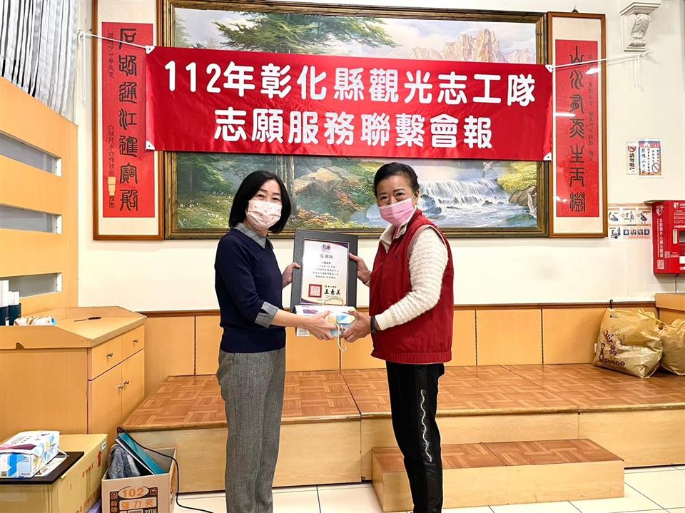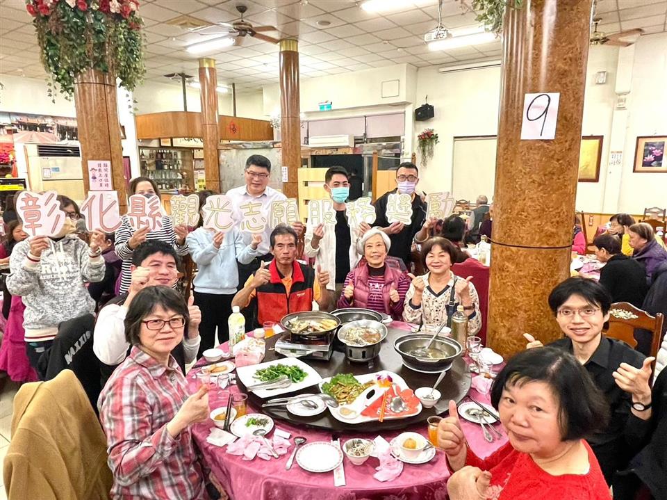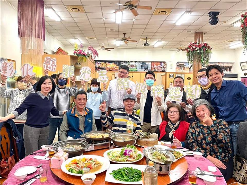 112年度彰化縣旅遊服務中心觀光志工第1次志願服務聯繫會報暨志工獎勵餐會(鹿港場112.02.18) 瀏覽人數: 267人 彰化縣政府為感謝彰化縣觀光志工的奉獻,於112年2月18日舉辦彰化縣旅遊服務中心觀光志工第1次志願服務聯繫會報暨志工獎勵餐會,彰化縣城市暨觀光發展處處長王瑩琦、副處長洪世益及企劃發展科科長李建宏及營運管理科科長鄭泓騏出席,感謝志工團隊於疫情期間堅守崗位,持續於「彰化縣旅遊服務中心及彰化縣自然生態教育中心」犧牲假期為遊客服務,並特別致贈感謝狀及獎品予志工隊隊長、副隊長、觀光解說人員及績優志工,感謝每一位觀光志工共同來為彰化觀光發展來努力,讓我們為所有的觀光志工喝采。