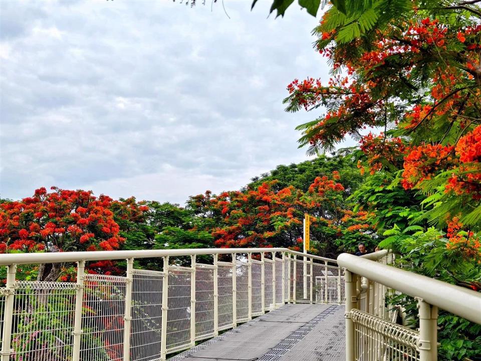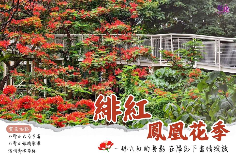 彰化鳳凰花季 | #畢業季必拍景點 瀏覽人數: 241人 彰化鳳凰花季 | #畢業季必拍景點一抹火紅的身影在陽光下盡情綻放為彰化夏日增添了濃郁的色彩在八卦山大佛旁的「八卦山天空步道」,是條蜿蜒的白色天橋,從空中穿越卦山路,不僅有高空視野,還能漫步森林中,目前正值鳳凰花季,綻放的紅色花瓣點綴在綠葉上,隨著夏日微風飄落、搖曳,放眼望去,整片紅海映入眼簾,真的太放鬆了!!步道還能散步到最新IG爆紅熱點「八卦山自然生態園區」玩彰化最長溜滑梯,快把握花期周末踏青去吧!!更多介紹: https://reurl.cc/MO3kvp【 #推薦賞花地點 】八卦山天空步道八卦山銀橋飛瀑溪州鄉綠筍路(溪州、田中和二水交界處)_#花況因天氣因素有所不同#彰化旅遊 #賞花 #鳳凰花 #彰化景點 #八卦山大佛風景區