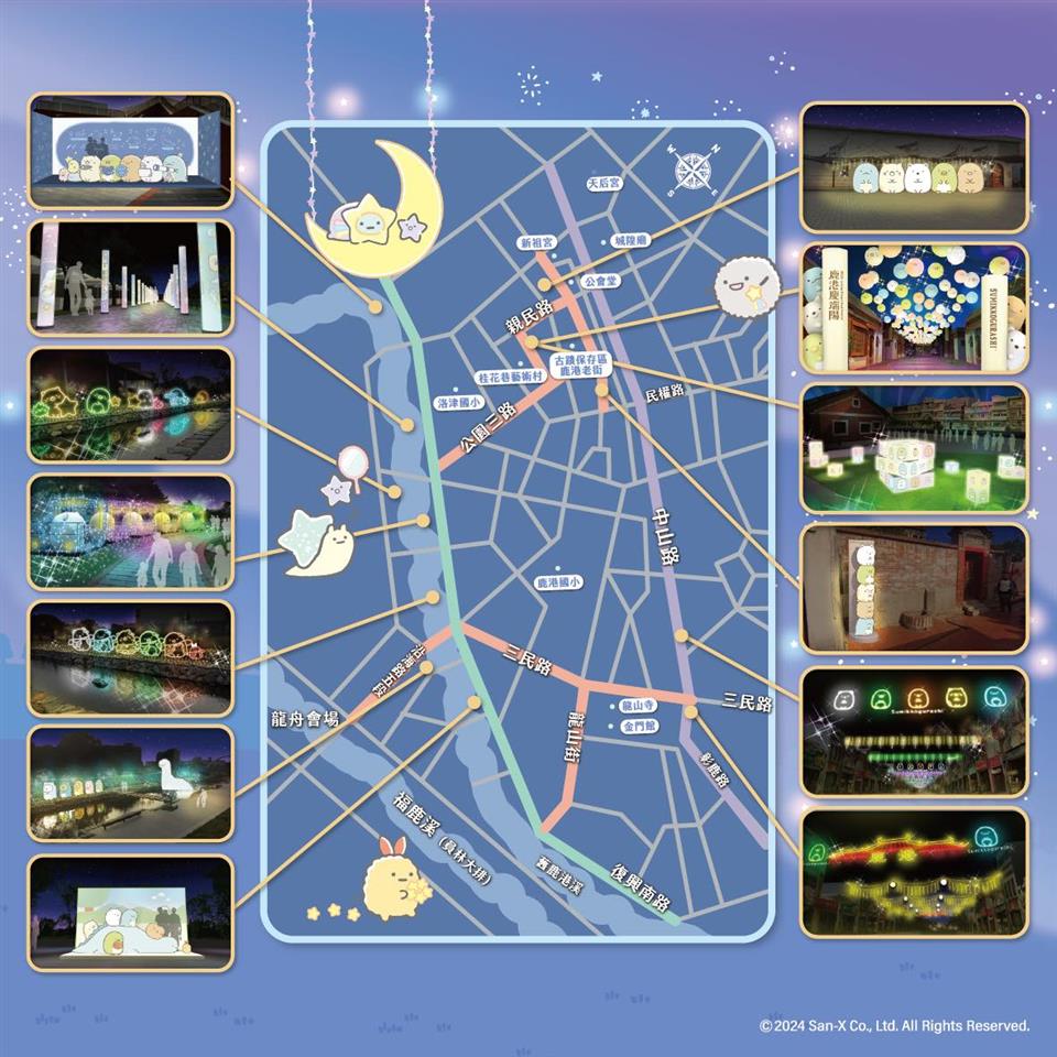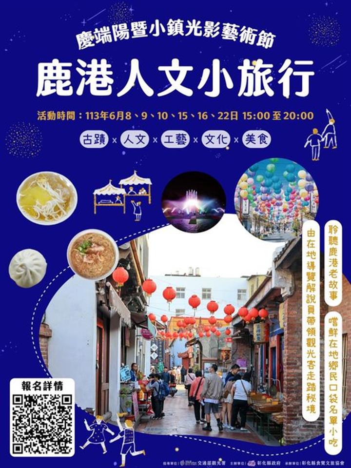 2024鹿港慶端陽 瀏覽人數: 448人 名列全國十二大節慶活動,彰化縣政府113年5月30日在縣府一樓中庭舉辦「2024鹿港慶端陽」宣傳記者會,一年一度「鹿港慶端陽」已邁入第47年,是全國12大節慶之一,即將於6/8-6/10盛大登場,縣府攜手鹿港鎮公所、福興鄉公所、龍舟委員會、各大觀光工廠、在地宮廟及民間社團,一起把活動辦的不僅有節日的味道又具有特色,將帶給全國民眾最精彩的慶典,並推薦大家三個必訪活動,一是「國際龍舟錦標賽」夜間龍舟賽,二是「鹿港小鎮光影藝術節」,首度結合日本超人氣「角落小夥伴」,三是「鹿港小鎮」,另外,有「鹿港溪河岸綠地音樂會」、「鹿港人文小旅行」、「魯班公宴」、「美食童玩」、「趣味民俗」及「散策市集」等豐富活動,歡迎大家五月五慶端午,來彰化鹿港感受最具節慶的端午佳節! 三大必訪活動,第一個必訪是中臺灣規模最大、歷史最悠久的「國際龍舟錦標賽」,今年報名隊伍高達118隊,一連三天會在福鹿溪,同場競速,角逐最高榮耀;同時,今年開幕當天更邀請到立法院韓國瑜院長將率領立院的委員及職員們組隊參加,還有中華職棒高人氣的「味全龍啦啦隊」,以及議會、中部地區縣市政府、國際友人等都將組隊共襄盛舉,體驗「扒龍船」的樂趣,歡迎全國民眾到場觀賽,體驗精彩刺激的夜間龍舟賽。 第二個必訪是「鹿港小鎮光影藝術節」,今年縣府首度與日本療癒系IP「角落小夥伴」合作,會在鹿港溪、公會堂、桂花巷藝術村、老街、中山路等街道布燈,並有大型「角落小夥伴」可愛公仔,陪伴大家共度端午節,讓您有一個羅曼蒂克的夜晚。 第三個必訪是「鹿港小鎮」,鹿港本身就是一座開放式博物館,豐富的人文底蘊與配合端午節慶文化,保存許多傳統習俗,有獨有的「煎堆」美食與取午時水習俗,在龍山寺有大型陞官圖、打陀螺及南北管傳統戲曲演出,在亞太鹿港渡假村有108桌看桌,擺設超過500件工藝作品的「魯班公宴」,值得大家細細味;在公會堂與文武廟有「夏日綜藝嘉年華」及「親子遊樂粽動員」讓大家體驗葫蘆問等鹿港古童玩及趣味活動;同時還有「鹿港溪河岸綠地音樂會」、「鹿港人文小旅行」、「探索小鎮集章趣」等多元精彩活動。另外,端午連假三天,我們也安排免費接駁車,歡迎大家來鹿港「看龍舟、嚐美食、賞古蹟、玩民俗」。 端午連假到彰化,除了體驗傳統習俗,還能發現鹿港小鎮新舊交融的文化魅力,各知名景點都有精彩活動!龍山寺有大型陞官圖及打陀螺等傳統趣味童玩體驗及欣賞南北管戲曲演出,公會堂及文武廟也準備了「夏日綜藝嘉年華」及「親子遊樂粽動員」等趣味活動與民同歡。另外,在亞太鹿港渡假村展出108桌、超過500件工藝大師作品的「魯班公宴」,今年更增加了「祭先賢子弟」環節,重現傳統儀式。 鹿港越夜越美麗,今年「小鎮光影藝術節」,縣府首度與日本的超人氣IP「角落小夥伴」合作,將這群形象鮮明、可愛又療癒的角色帶到鹿港,傳遞珍惜家人、夥伴同心的療癒感,從鹿港溪到老街、桂花巷、公會堂、中山路等街道,每條路上都有燈光及可愛公仔點綴,於每晚6:30-10:00點亮每一個暖心的小角落,這項展出將持續到8月4日。2024鹿港慶端陽活動官網2024鹿港慶端陽-人文小旅行報名資訊