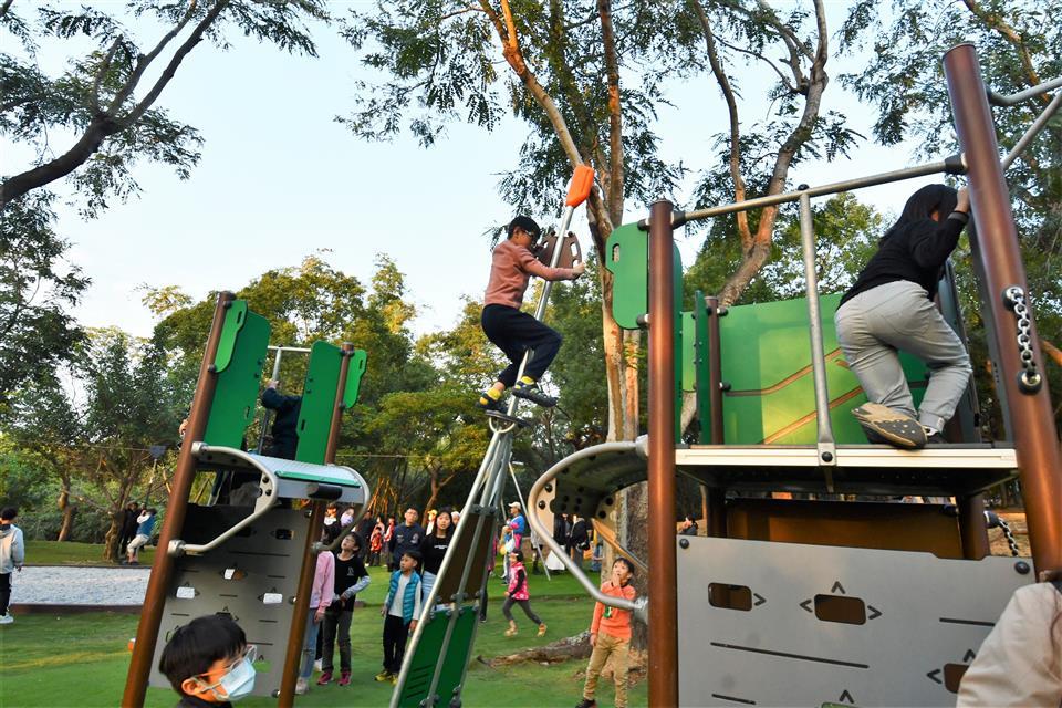 華陽公園(華陽公園兒童遊戲場環境設施改善)(114.01) 瀏覽人數: 222人 在彰化市多了一個新的森林公園,位於保四總隊對面的嶄新華陽公園,佔地約5公頃是彰化市最大的公園,從體育場走過華陽吊橋也可以到華陽公園,是民眾平常運動及休閒的好去處,彰化縣政府爭取內政部「兒童遊戲場環境設施改善計畫」辦理「華陽公園兒童遊戲場環境設施改善」,總工程經費550萬元,中央補助350萬元,自籌款200萬元,正式開放使用。 縣府持續針對各鄉鎮市盤點,陸續改善興建公園,希望孩子不只待在家裡玩手機,也可以出來曬曬太陽、流流汗,玩遊具,親子關係更加親密。這次華陽公園,採延續在地的自然原始的空間氛圍,以森林意象做為發想,創造出孩童們的森林探險遊戲場,增設森林溜索、森林攀爬網、泰山空中擺盪組及彈跳床,也要特別提醒縣民因遊具挑戰度較高,建議以年齡13歲以上孩童可以來挑戰,13歲以下的小朋友,家長陪同時,特別要注意自身安全。 縣府在112-113年向內政部爭取「兒童遊戲場環境設施改善計畫」經費,獲內政部核定2億2千萬元,中央補助款約1億7千8百萬,縣府配合款約4千6百萬,總計爭取改善56處公園兒童遊戲場,歡迎民眾利用春節期間好天氣,到鄰近公園走走。 華陽公園自109年重新整修開放迄今,部分遊具已老舊損壞,為提供孩童安全的遊戲場域及豐富活動類型,提升遊憩體驗多元性,辦理這次遊戲場改善計畫。